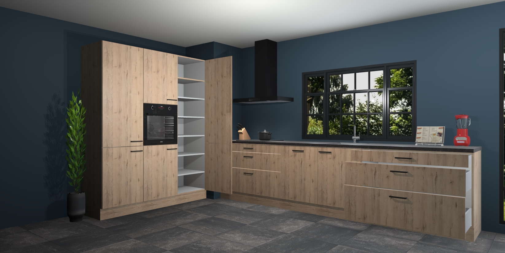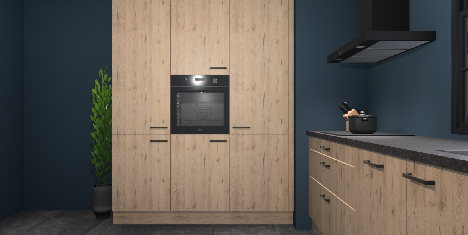 De softclose deuren openen en sluiten is ook heel eenvoudig - geniet van een moeiteloze keukenervaring, zelfs als er kinderen rondlopen. Voor extra gemak bij het plaatsen van uw bestelling bieden we ook een upgrade naar een kookplaat met geïntegreerde afzuiging.