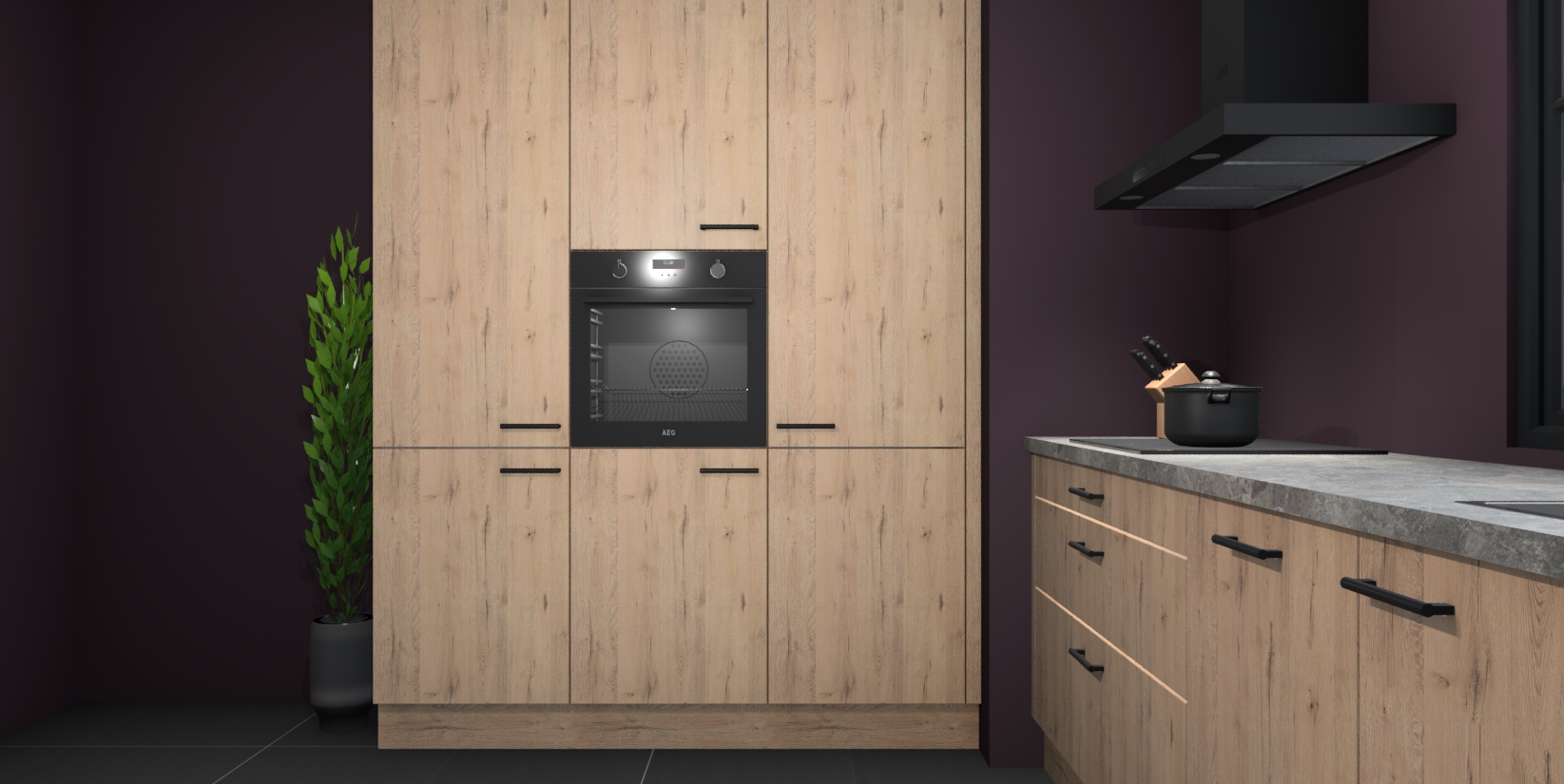 De softclose deuren openen en sluiten is ook heel eenvoudig - geniet van een moeiteloze keukenervaring, zelfs als er kinderen rondlopen. Voor extra gemak bij het plaatsen van uw bestelling bieden we ook een upgrade naar een kookplaat met geïntegreerde afzuiging.