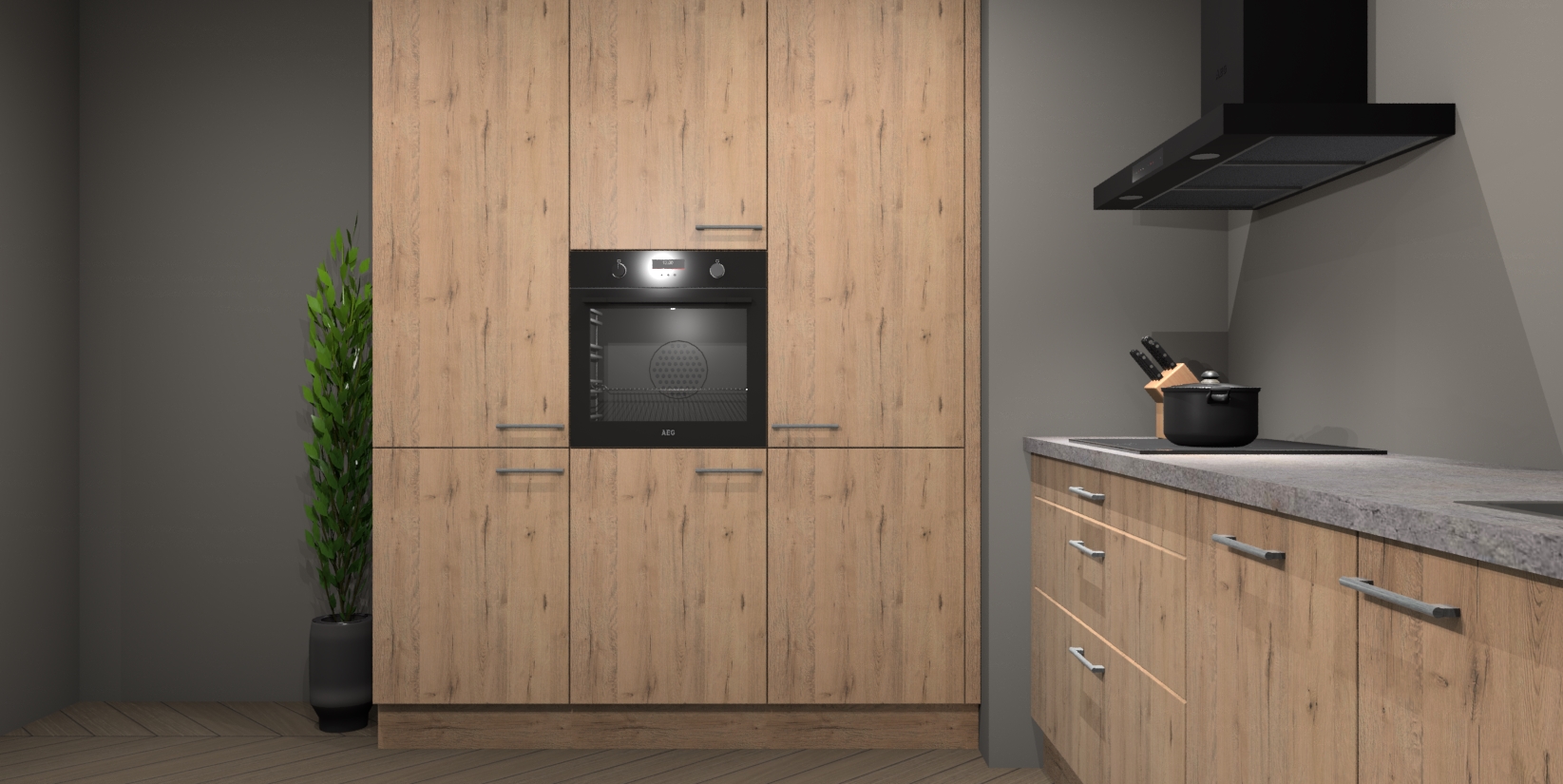 De softclose deuren openen en sluiten is ook heel eenvoudig - geniet van een moeiteloze keukenervaring, zelfs als er kinderen rondlopen. Voor extra gemak bij het plaatsen van uw bestelling bieden we ook een upgrade naar een kookplaat met geïntegreerde afzuiging.