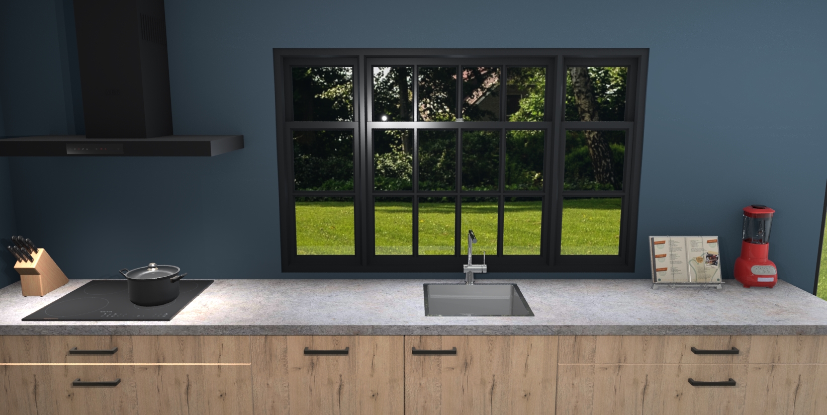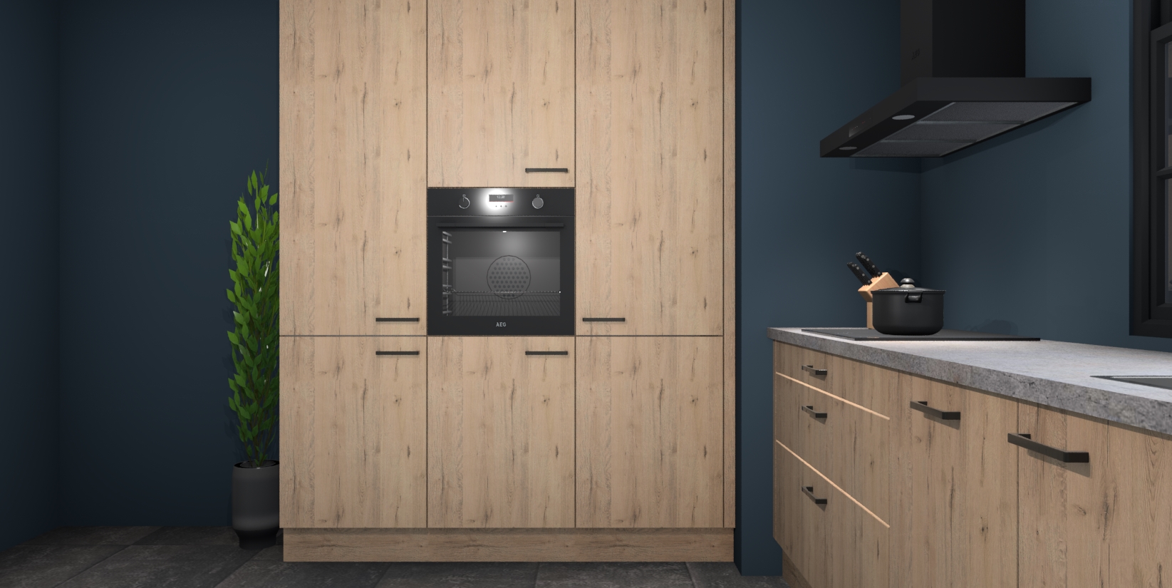 De softclose deuren openen en sluiten is ook heel eenvoudig - geniet van een moeiteloze keukenervaring, zelfs als er kinderen rondlopen. Voor extra gemak bij het plaatsen van uw bestelling bieden we ook een upgrade naar een kookplaat met geïntegreerde afzuiging.