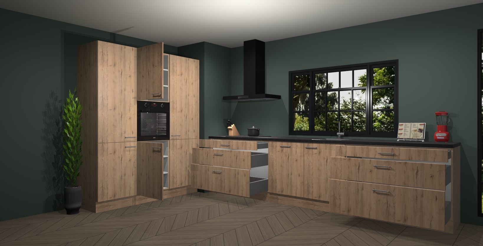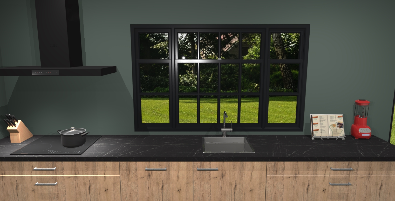 De softclose deuren openen en sluiten is ook heel eenvoudig - geniet van een moeiteloze keukenervaring, zelfs als er kinderen rondlopen. Voor extra gemak bij het plaatsen van uw bestelling bieden we ook een upgrade naar een kookplaat met geïntegreerde afzuiging.