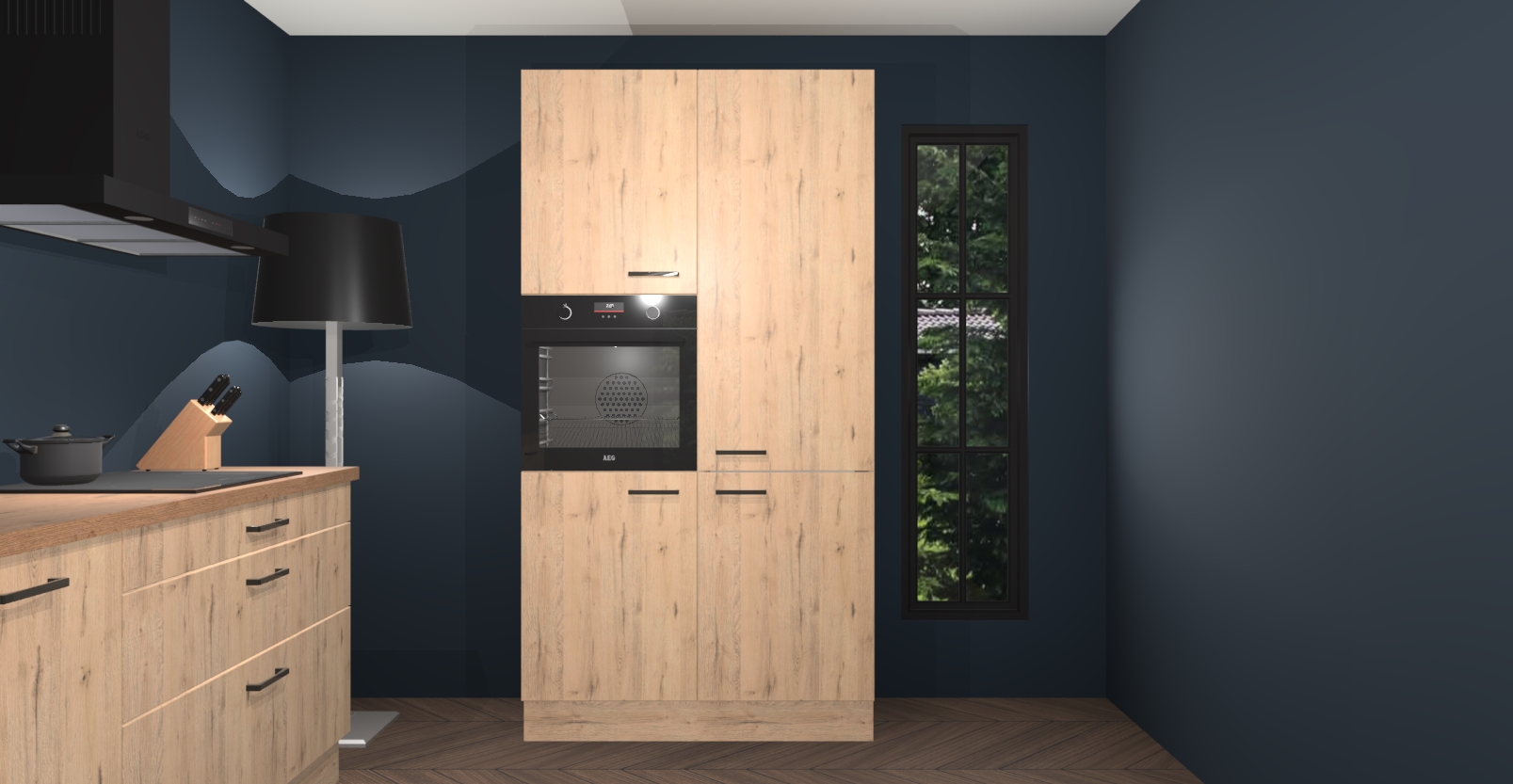 De setting is compleet gemaakt door de vijf inbouwapparaten: wanneer u gaat bestellen kunt u upgraden naar AEG-apparaten als oven, inductieplaat, afzuigkap, vaatwasser en koelkast. Kiest u voor onze Madera natuur keuken Monaco, dan weet u zeker dat u te maken heeft met Duitse kwaliteit. Bovendien is er altijd sprake van een lage prijs en profiteren we aantrekkelijk leveringstermijn: die bedraagt slechts 7 weken ! Om het extra makkelijk te maken worden de keukenkasten reeds voorgemonteerd geleverd.