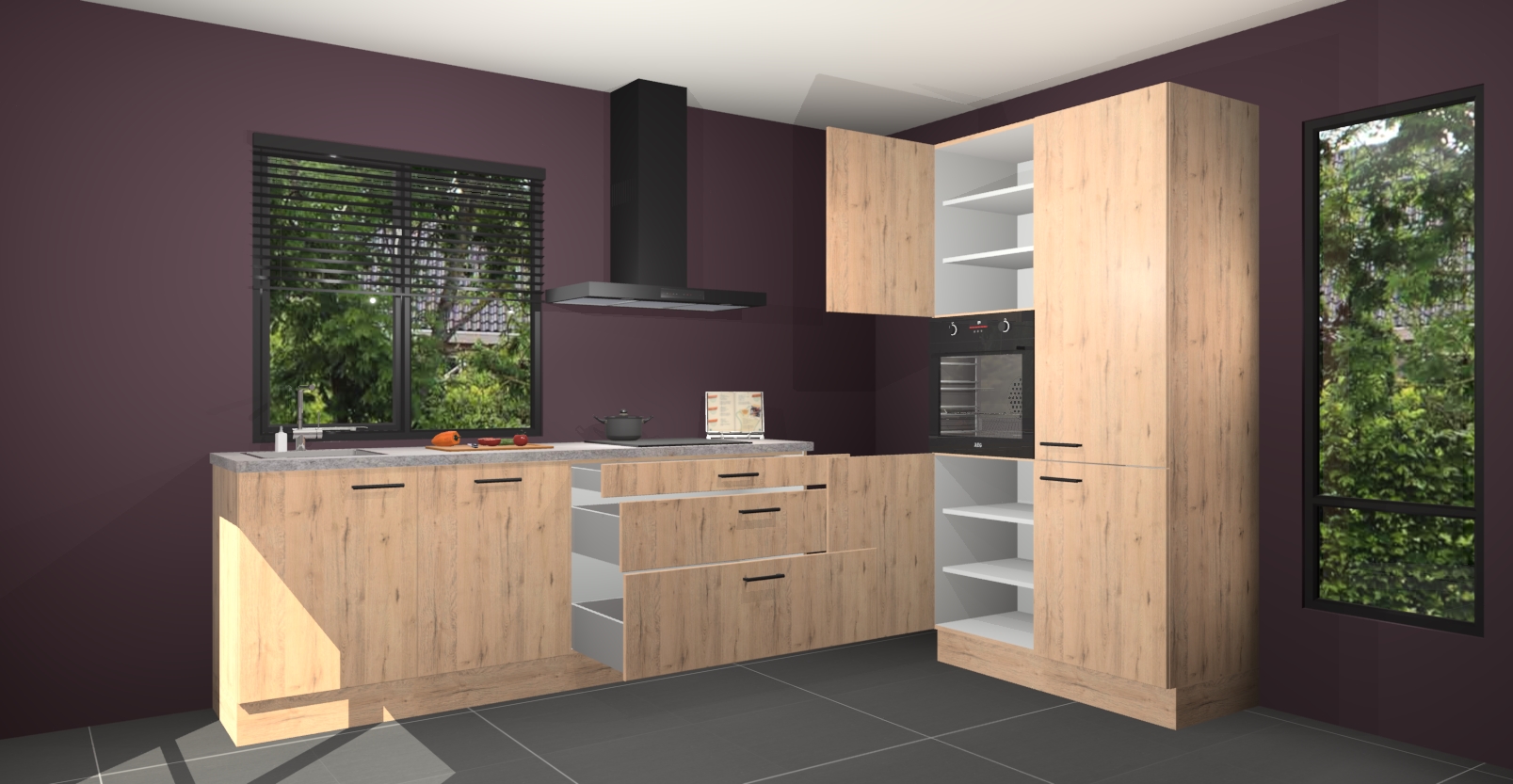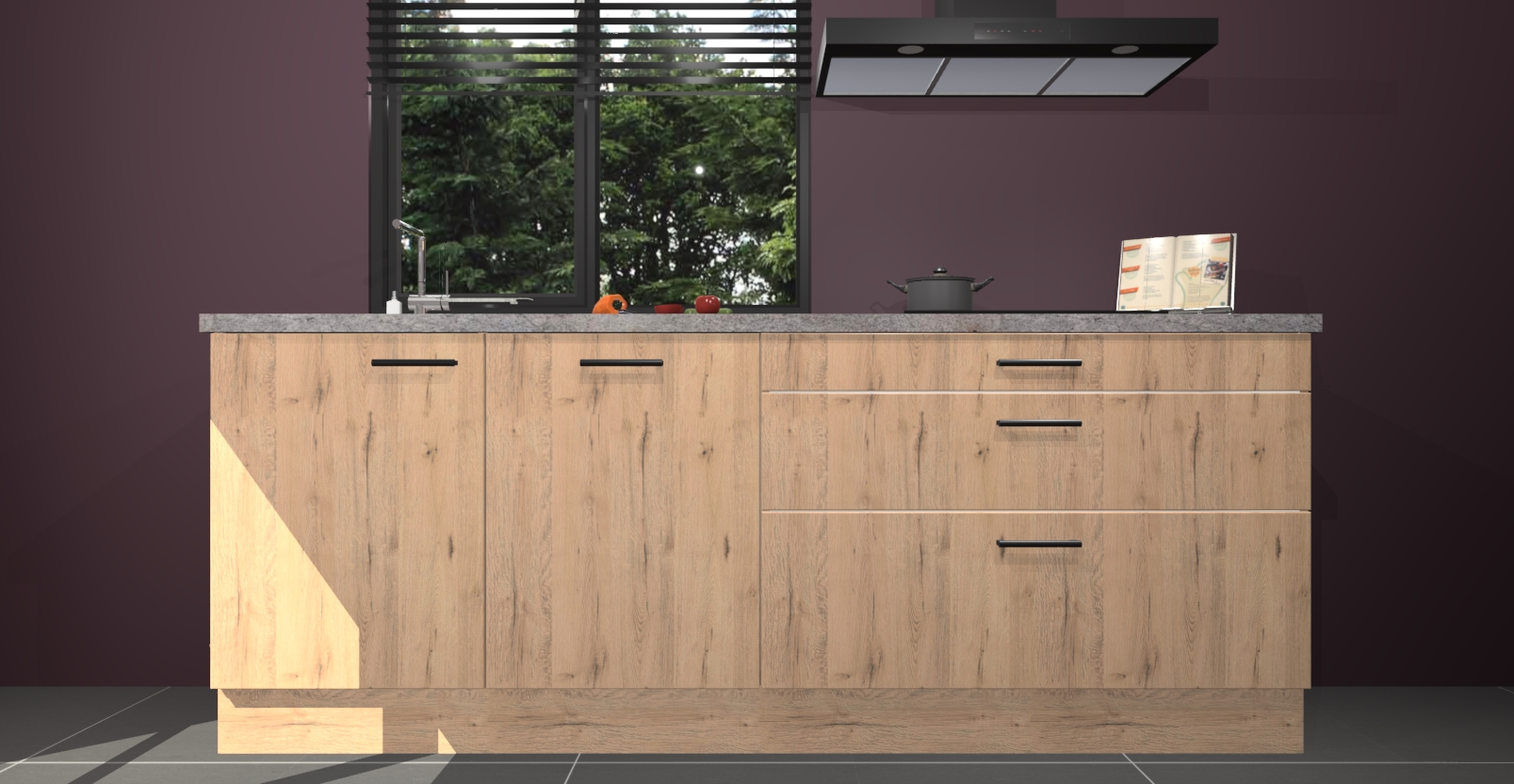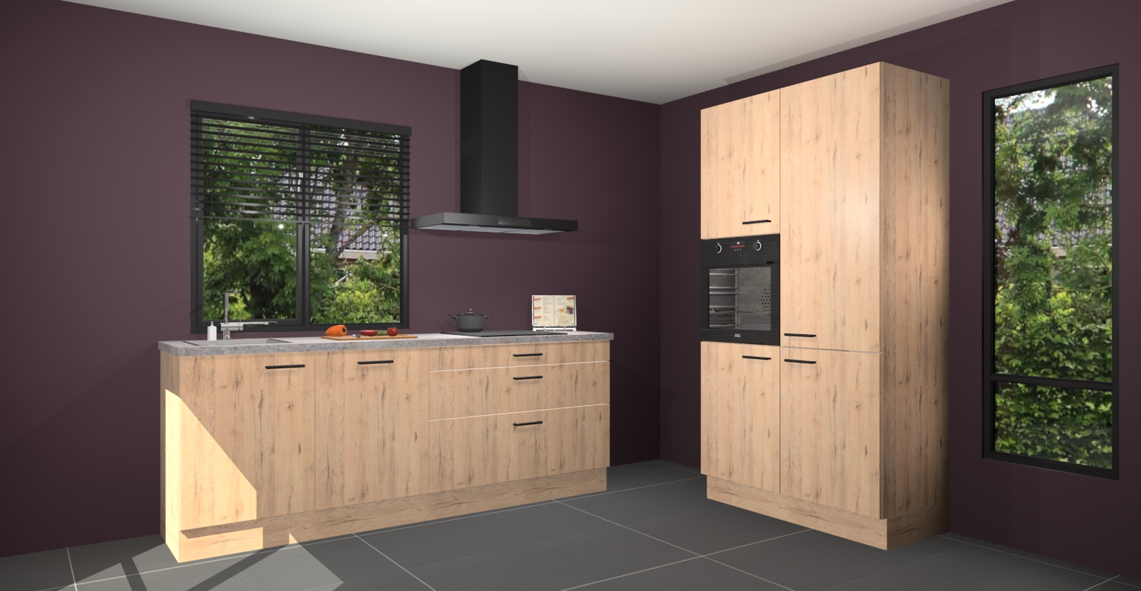 De setting is compleet gemaakt door de vijf inbouwapparaten: wanneer u gaat bestellen kunt u upgraden naar AEG-apparaten als oven, inductieplaat, afzuigkap, vaatwasser en koelkast. Kiest u voor onze Madera natuur keuken Monaco, dan weet u zeker dat u te maken heeft met Duitse kwaliteit. Bovendien is er altijd sprake van een lage prijs en profiteren we aantrekkelijk leveringstermijn: die bedraagt slechts 7 weken ! Om het extra makkelijk te maken worden de keukenkasten reeds voorgemonteerd geleverd.