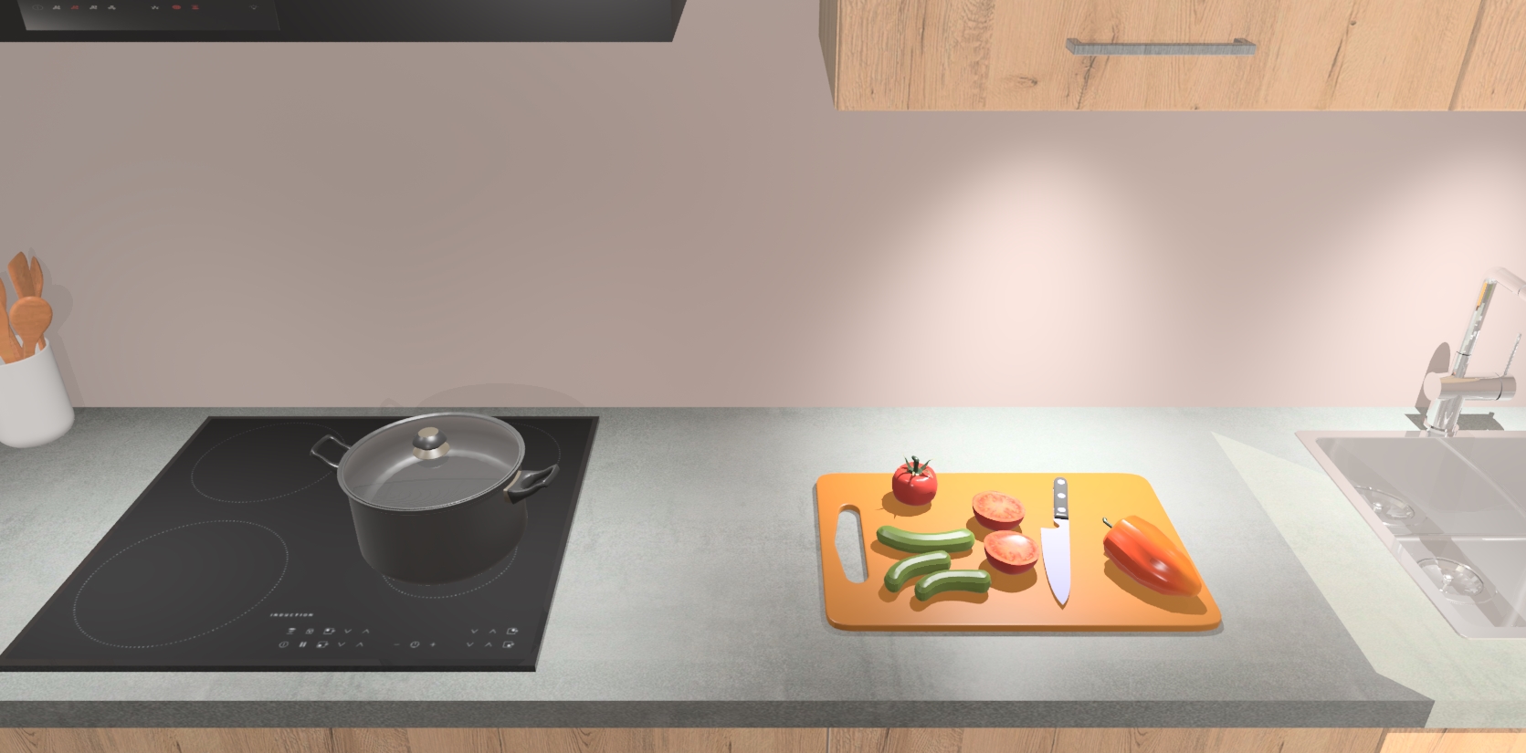 - Uitsparing van kookplaat, spoelbak en kraan dient u zelf te verzorgen.