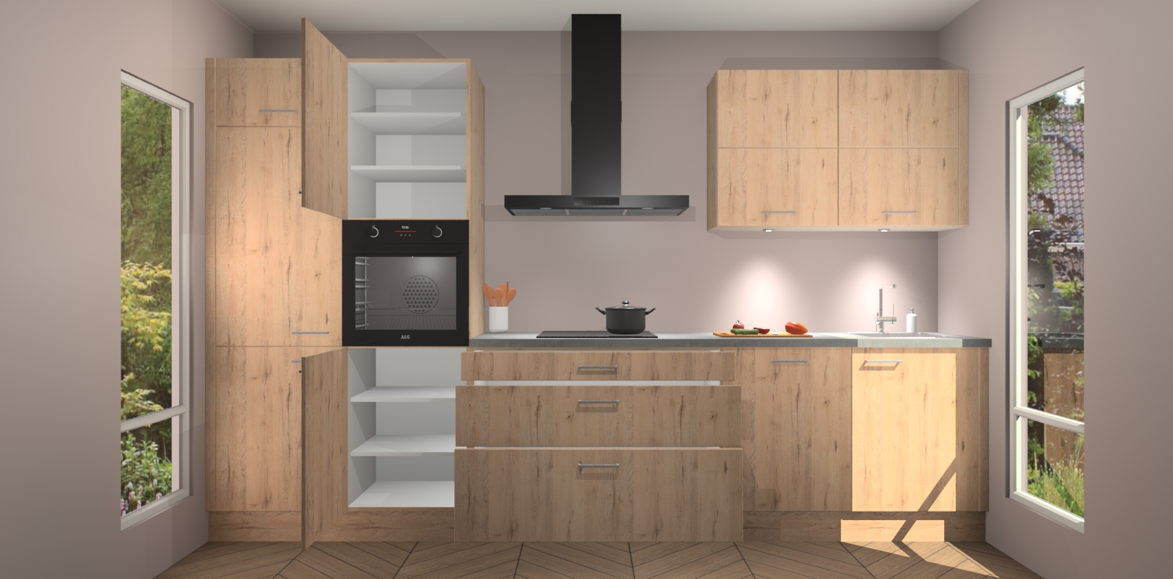 Maak kennis met de nieuwe Madera Natuur Keuken Parijs - de perfecte designcombinatie van gemak, moderne elegantie en ultramodern design. Met een gemakkelijk te reinigen Madera Natuur afwerking, zal de slankheid van deze keuken zeker een vleugje luxe toevoegen aan elke ruimte die hij inneemt.