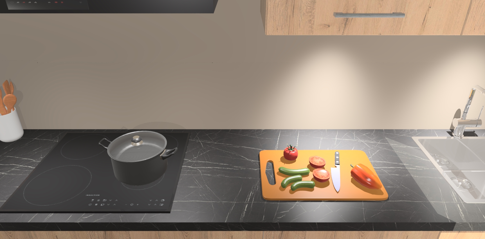 - Uitsparing van kookplaat, spoelbak en kraan dient u zelf te verzorgen.