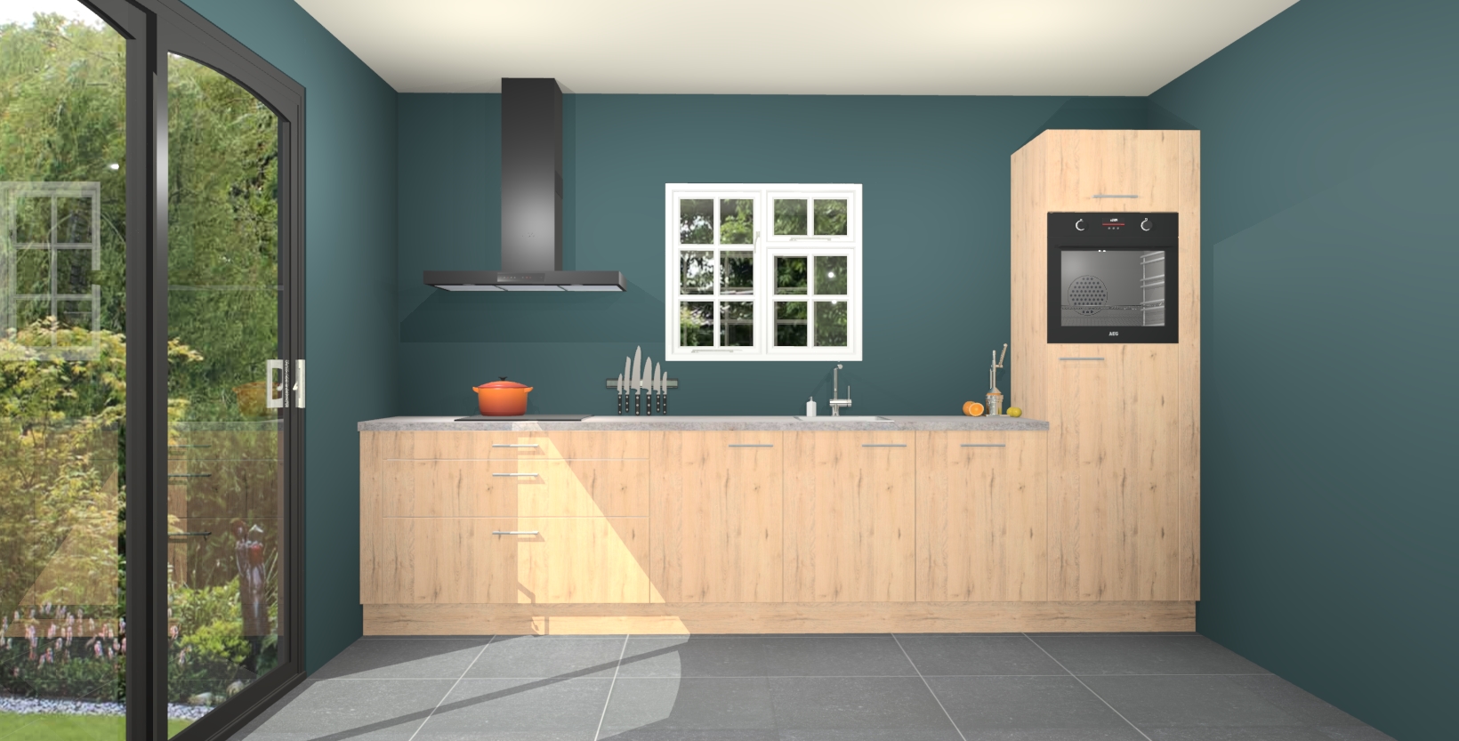 Maak kennis met de madera natuur keuken Sofia: de perfecte mix van stijl en gemak. De keuken heeft vijf inbouw apparaten, plus een werkblad in houtlook dat meteen warmte en verfijning toevoegt.