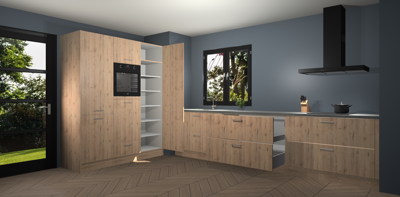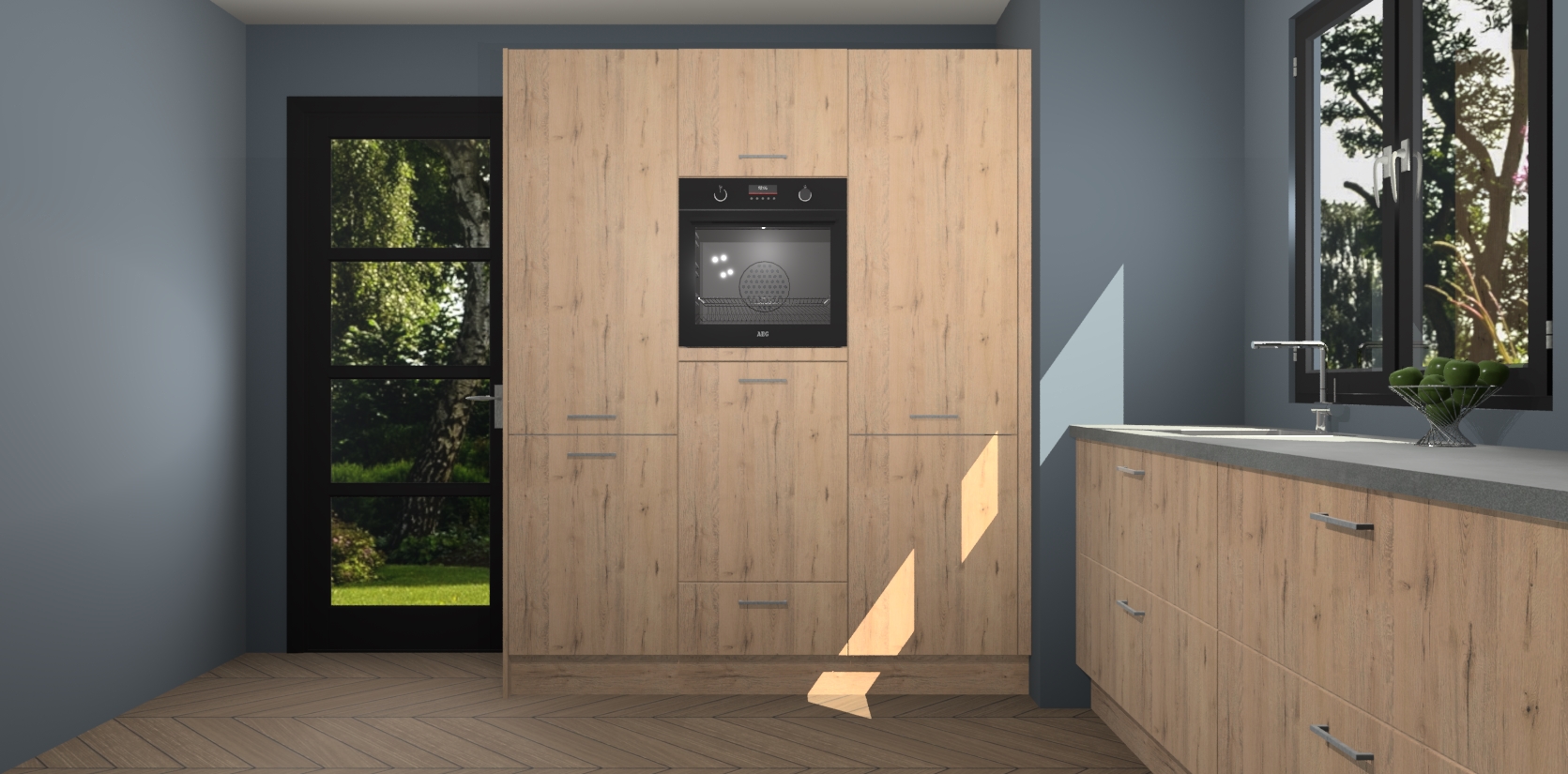 De softclose deuren openen en sluiten is ook heel eenvoudig - geniet van een moeiteloze keukenervaring, zelfs als er kinderen rondlopen. Voor extra gemak bij het plaatsen van uw bestelling bieden we ook een upgrade naar een kookplaat met geïntegreerde afzuiging.