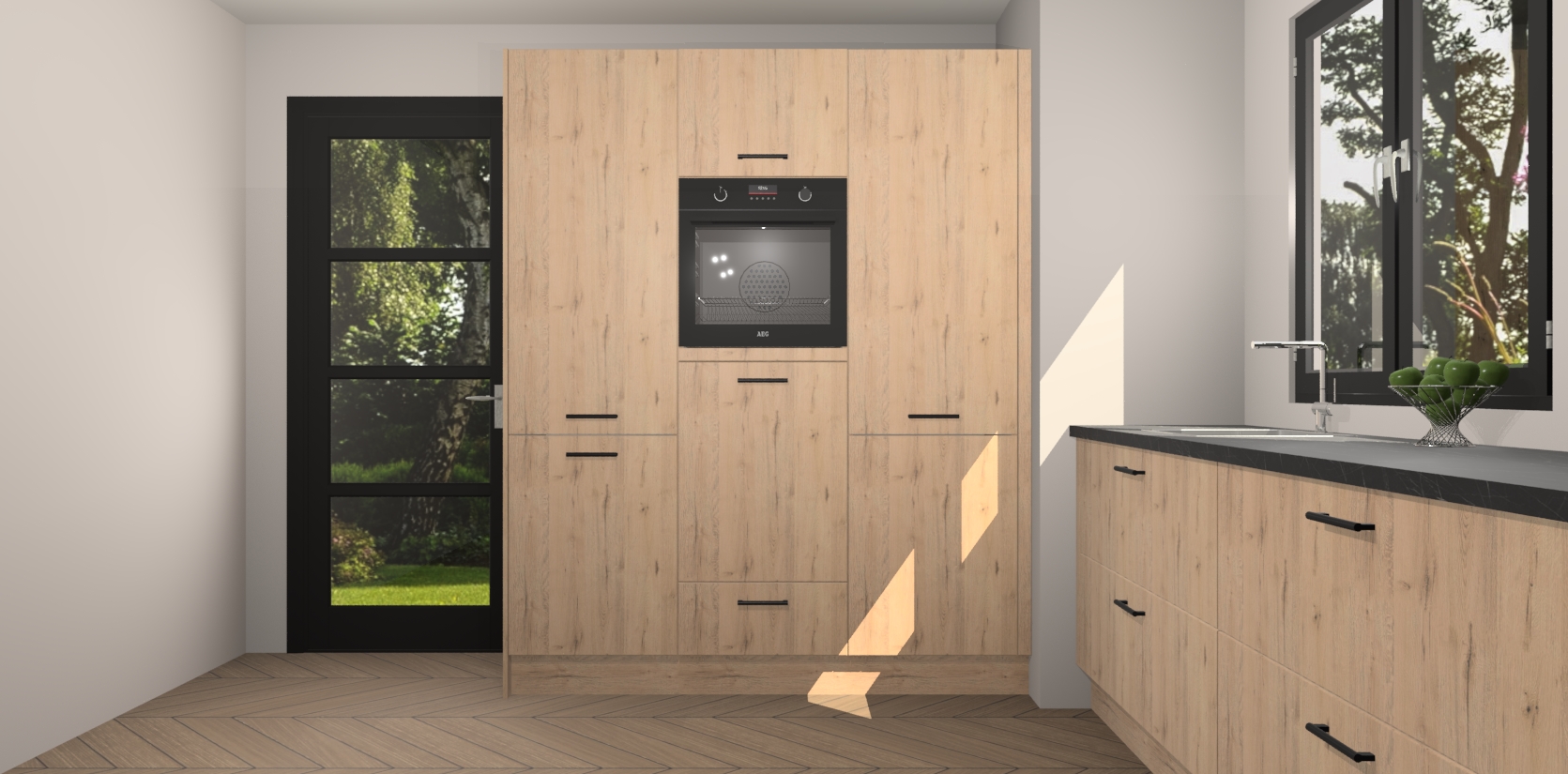 De softclose deuren openen en sluiten is ook heel eenvoudig - geniet van een moeiteloze keukenervaring, zelfs als er kinderen rondlopen. Voor extra gemak bij het plaatsen van uw bestelling bieden we ook een upgrade naar een kookplaat met geïntegreerde afzuiging.