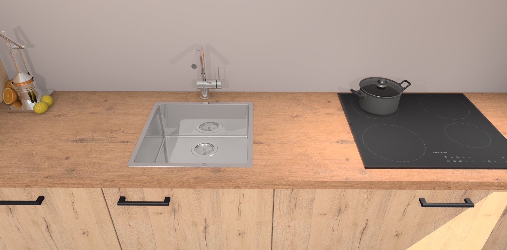 - Uitsparing van kookplaat, spoelbak en kraan dient u zelf te verzorgen.