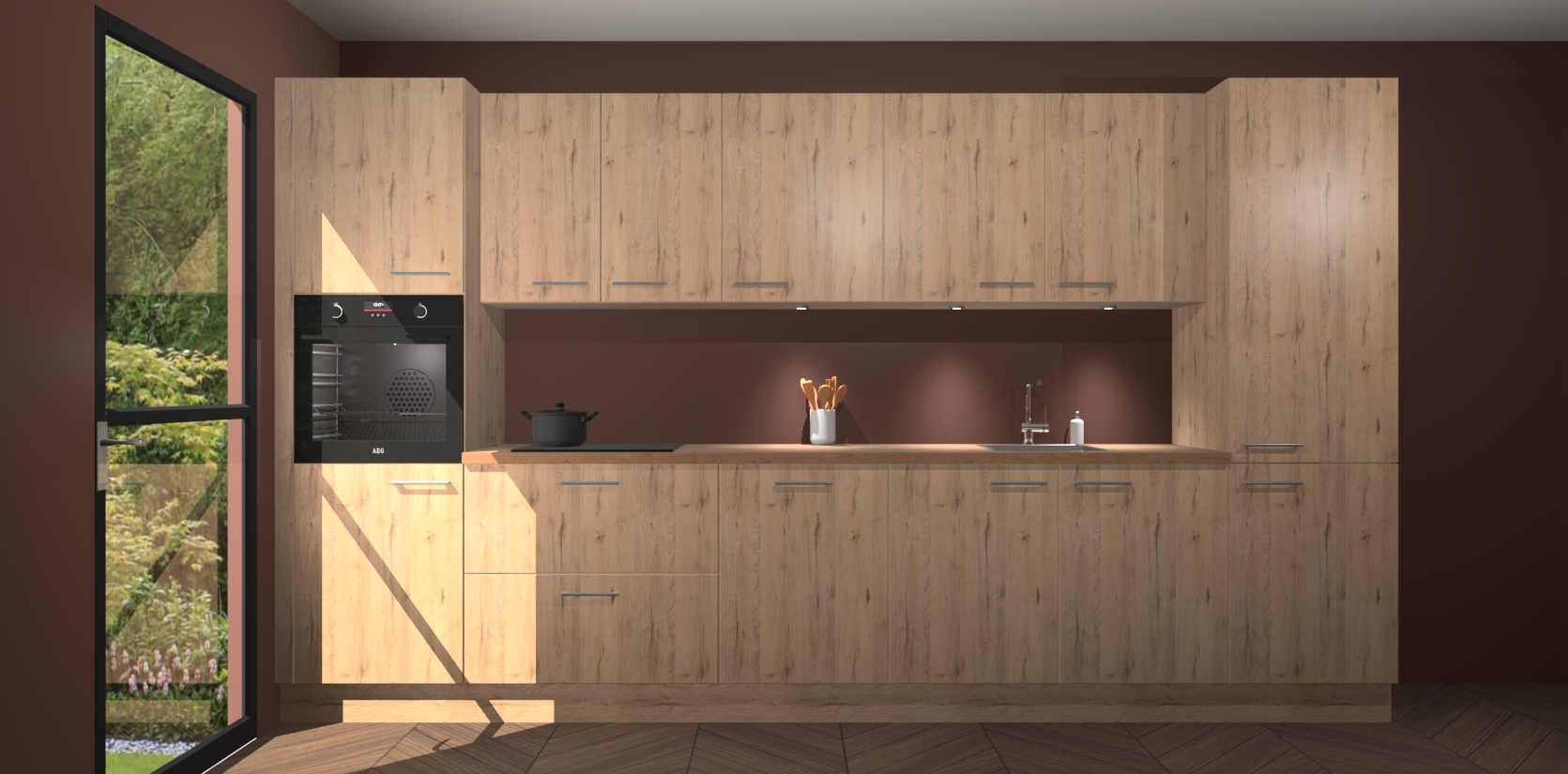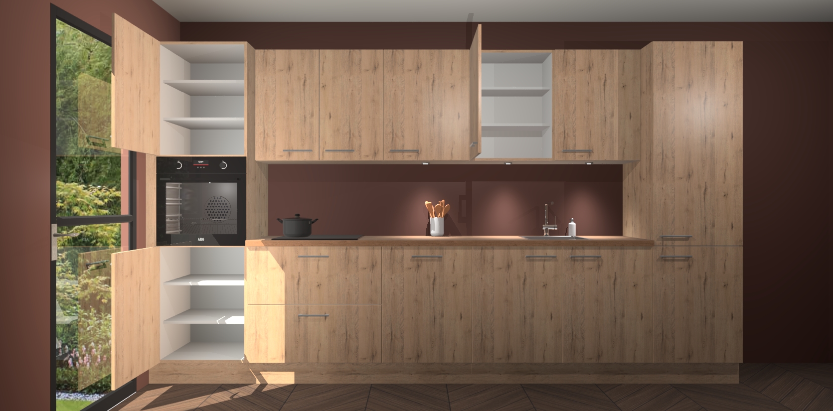 Dit is de perfecte keuken voor wie op zoek is naar een luxueuze stijl zonder zijn portemonnee te legen! Het chique ontwerp van de madera natuur keuken Wels voegt dat vleugje verfijning toe aan elk huis. Het gemak van voorgemonteerde kasten bespaart u talloze uren tijd en energie, zodat u veel sneller dan verwacht kunt beginnen te genieten van uw prachtige nieuwe keuken. Bovendien bedraagt de levertijd slechts 7 weken.
