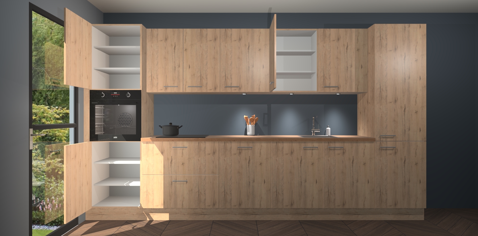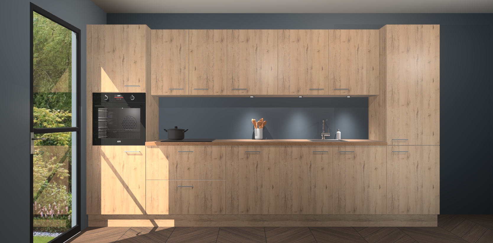 Dit is de perfecte keuken voor wie op zoek is naar een luxueuze stijl zonder zijn portemonnee te legen! Het chique ontwerp van de madera natuur keuken Wels voegt dat vleugje verfijning toe aan elk huis. Het gemak van voorgemonteerde kasten bespaart u talloze uren tijd en energie, zodat u veel sneller dan verwacht kunt beginnen te genieten van uw prachtige nieuwe keuken. Bovendien bedraagt de levertijd slechts 7 weken.