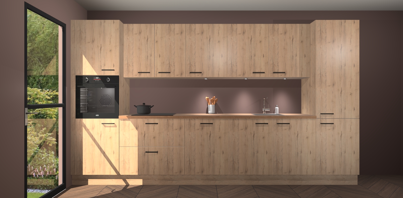 Dit is de perfecte keuken voor wie op zoek is naar een luxueuze stijl zonder zijn portemonnee te legen! Het chique ontwerp van de madera natuur keuken Wels voegt dat vleugje verfijning toe aan elk huis. Het gemak van voorgemonteerde kasten bespaart u talloze uren tijd en energie, zodat u veel sneller dan verwacht kunt beginnen te genieten van uw prachtige nieuwe keuken. Bovendien bedraagt de levertijd slechts 7 weken.