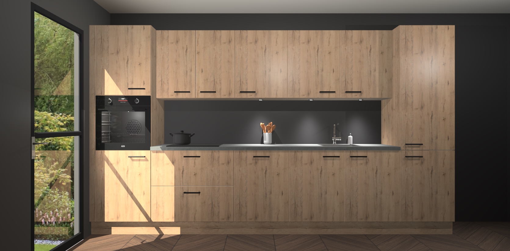 Dit is de perfecte keuken voor wie op zoek is naar een luxueuze stijl zonder zijn portemonnee te legen! Het chique ontwerp van de madera natuur keuken Wels voegt dat vleugje verfijning toe aan elk huis. Het gemak van voorgemonteerde kasten bespaart u talloze uren tijd en energie, zodat u veel sneller dan verwacht kunt beginnen te genieten van uw prachtige nieuwe keuken. Bovendien bedraagt de levertijd slechts 7 weken.