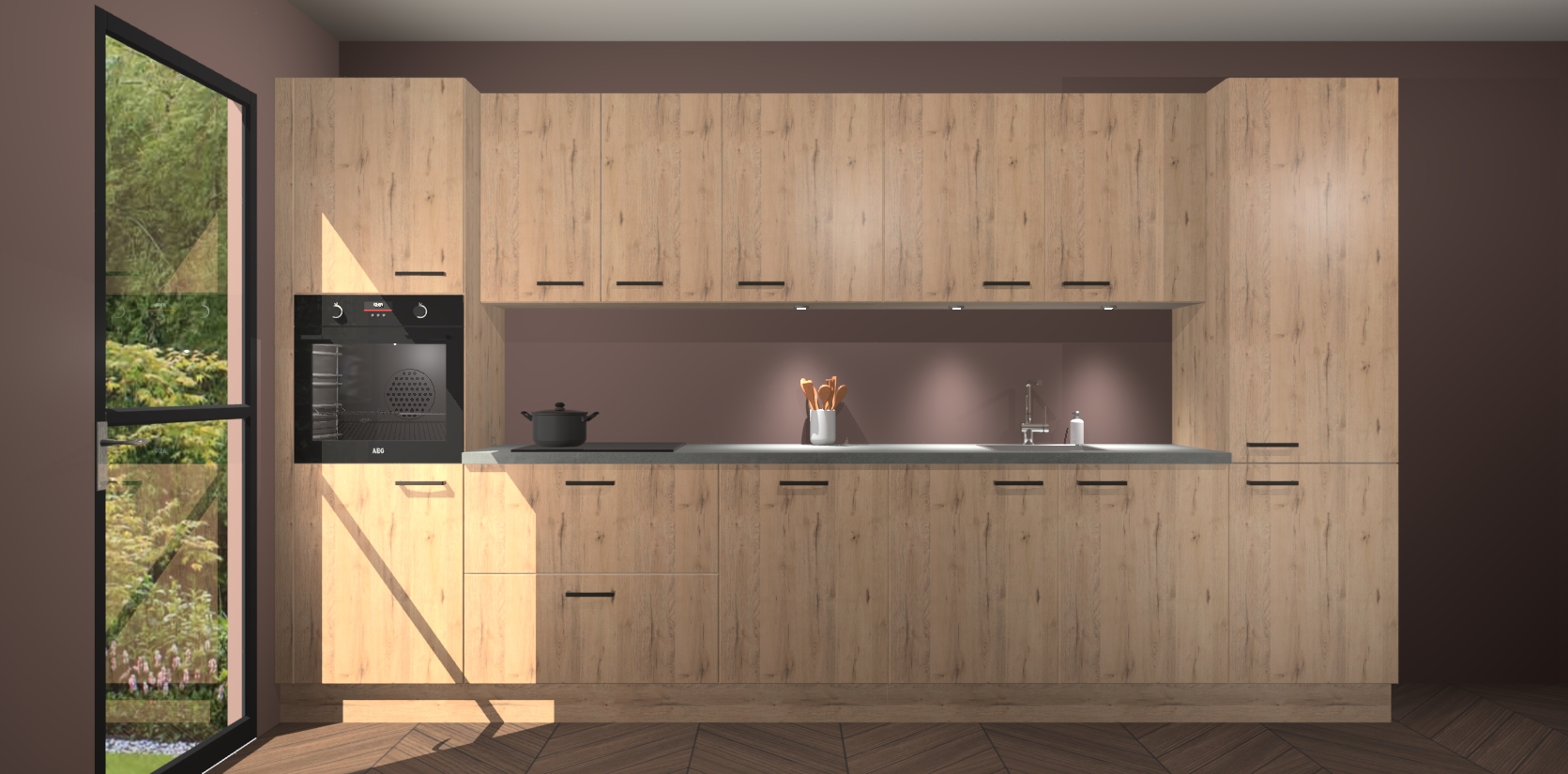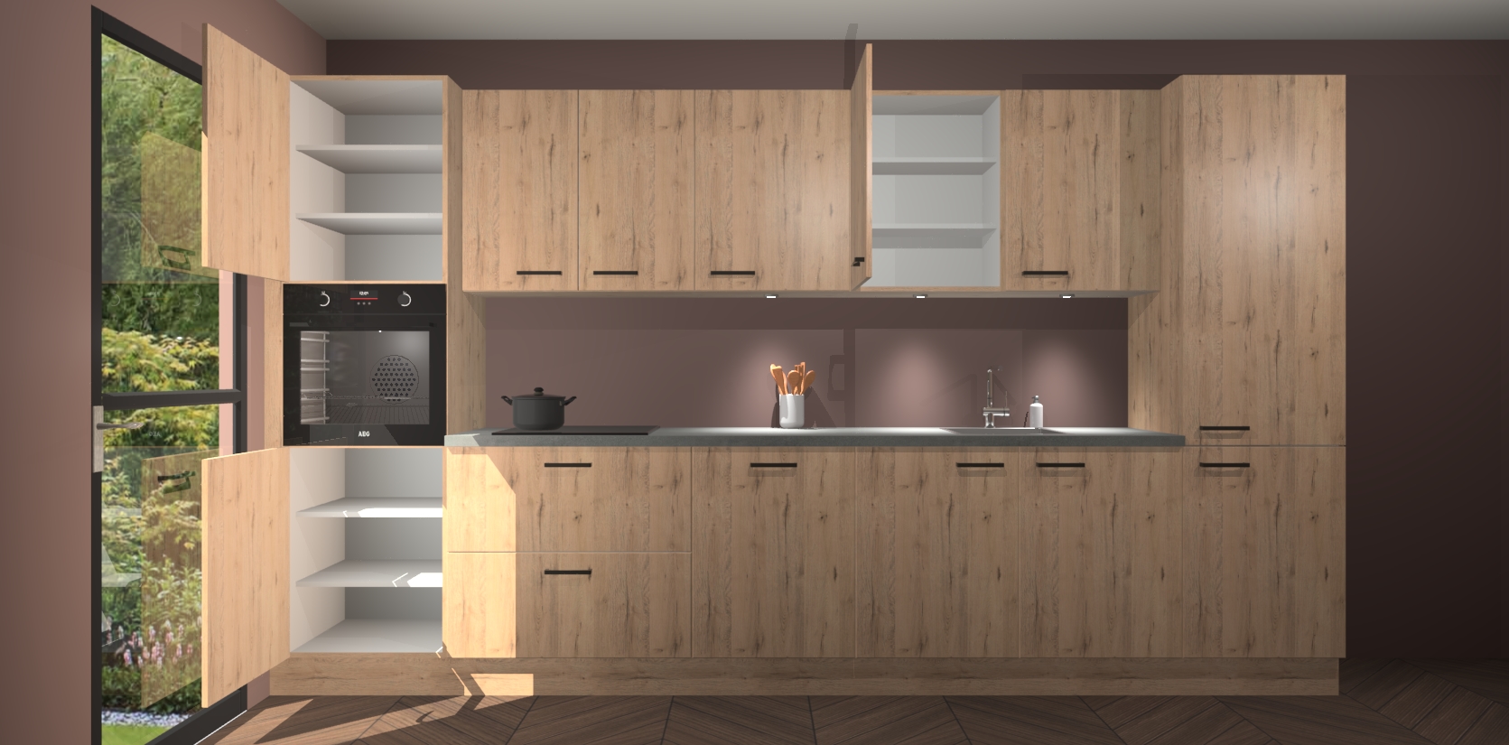 Dit is de perfecte keuken voor wie op zoek is naar een luxueuze stijl zonder zijn portemonnee te legen! Het chique ontwerp van de madera natuur keuken Wels voegt dat vleugje verfijning toe aan elk huis. Het gemak van voorgemonteerde kasten bespaart u talloze uren tijd en energie, zodat u veel sneller dan verwacht kunt beginnen te genieten van uw prachtige nieuwe keuken. Bovendien bedraagt de levertijd slechts 7 weken.