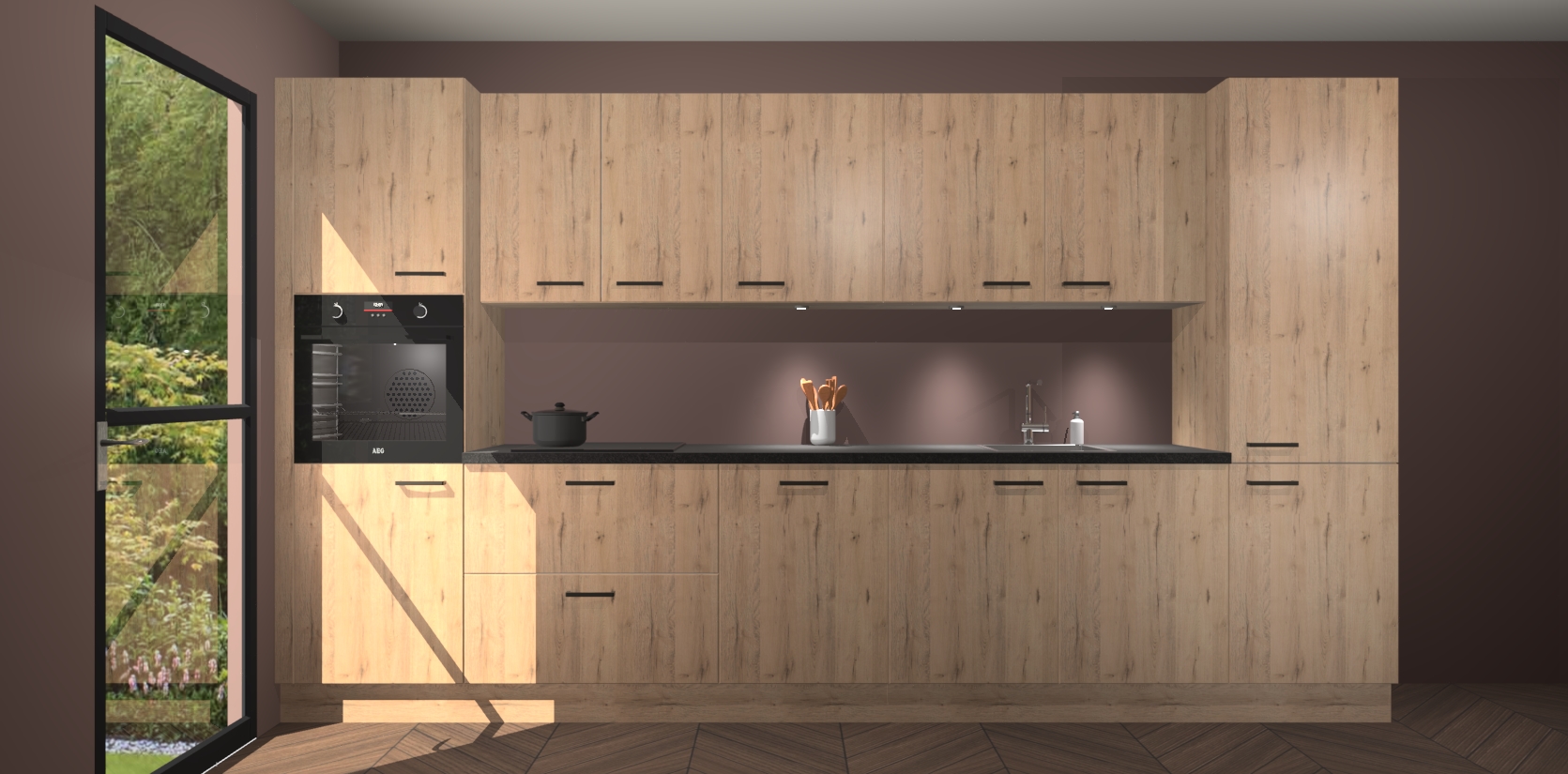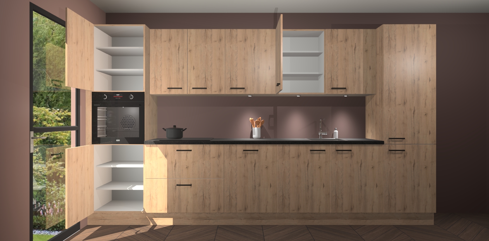 Dit is de perfecte keuken voor wie op zoek is naar een luxueuze stijl zonder zijn portemonnee te legen! Het chique ontwerp van de madera natuur keuken Wels voegt dat vleugje verfijning toe aan elk huis. Het gemak van voorgemonteerde kasten bespaart u talloze uren tijd en energie, zodat u veel sneller dan verwacht kunt beginnen te genieten van uw prachtige nieuwe keuken. Bovendien bedraagt de levertijd slechts 7 weken.