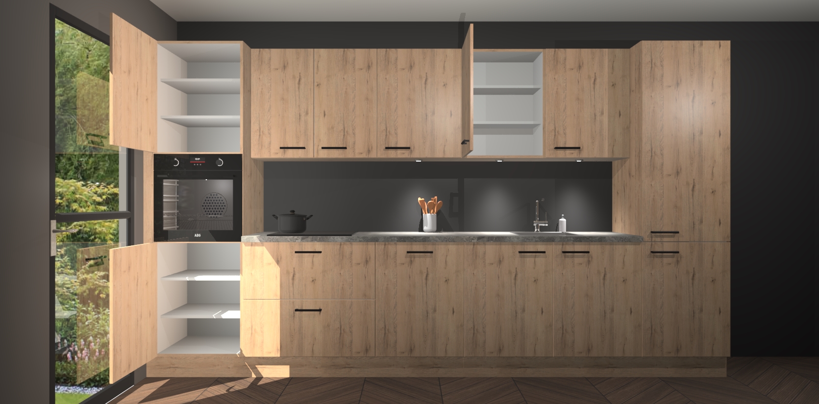 Dit is de perfecte keuken voor wie op zoek is naar een luxueuze stijl zonder zijn portemonnee te legen! Het chique ontwerp van de madera natuur keuken Wels voegt dat vleugje verfijning toe aan elk huis. Het gemak van voorgemonteerde kasten bespaart u talloze uren tijd en energie, zodat u veel sneller dan verwacht kunt beginnen te genieten van uw prachtige nieuwe keuken. Bovendien bedraagt de levertijd slechts 7 weken.
