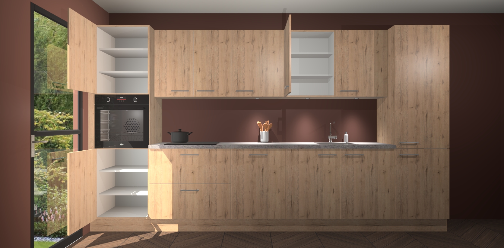 Dit is de perfecte keuken voor wie op zoek is naar een luxueuze stijl zonder zijn portemonnee te legen! Het chique ontwerp van de madera natuur keuken Wels voegt dat vleugje verfijning toe aan elk huis. Het gemak van voorgemonteerde kasten bespaart u talloze uren tijd en energie, zodat u veel sneller dan verwacht kunt beginnen te genieten van uw prachtige nieuwe keuken. Bovendien bedraagt de levertijd slechts 7 weken.