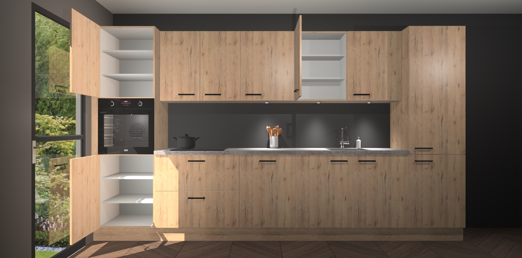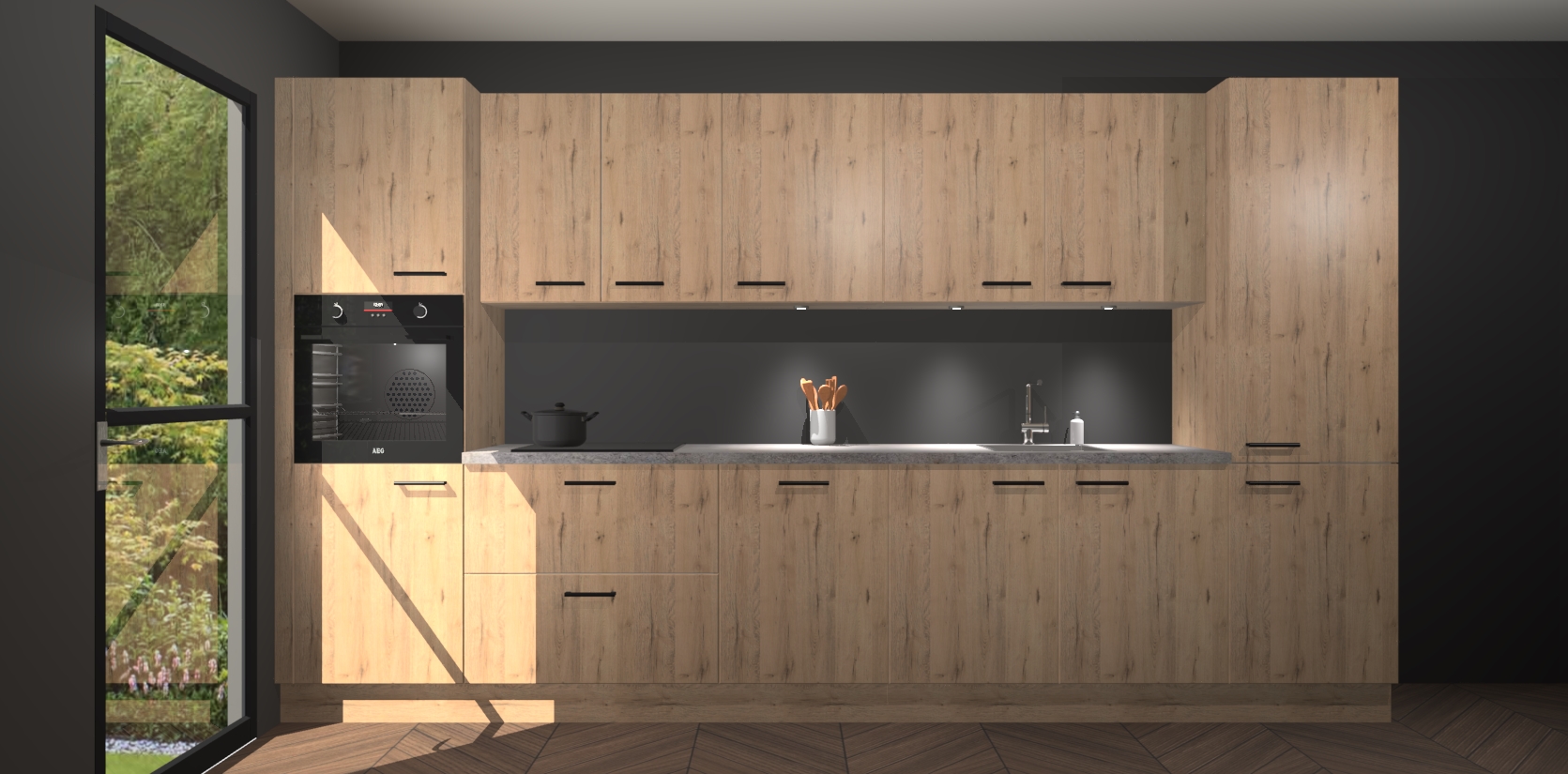 Dit is de perfecte keuken voor wie op zoek is naar een luxueuze stijl zonder zijn portemonnee te legen! Het chique ontwerp van de madera natuur keuken Wels voegt dat vleugje verfijning toe aan elk huis. Het gemak van voorgemonteerde kasten bespaart u talloze uren tijd en energie, zodat u veel sneller dan verwacht kunt beginnen te genieten van uw prachtige nieuwe keuken. Bovendien bedraagt de levertijd slechts 7 weken.