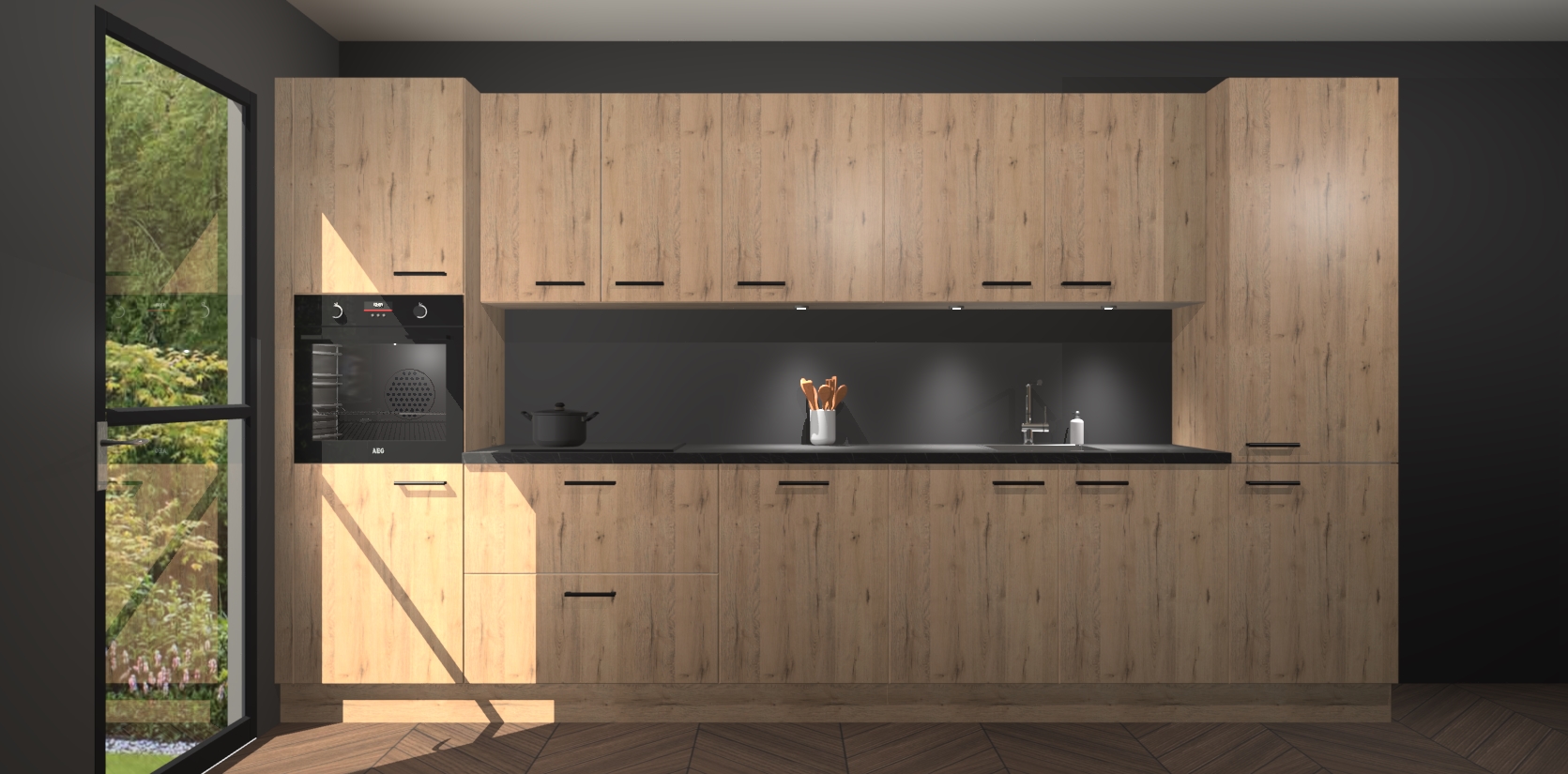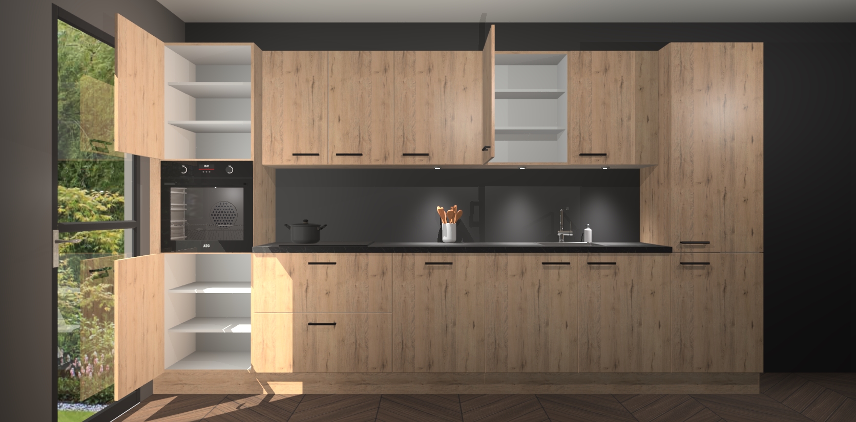 Dit is de perfecte keuken voor wie op zoek is naar een luxueuze stijl zonder zijn portemonnee te legen! Het chique ontwerp van de madera natuur keuken Wels voegt dat vleugje verfijning toe aan elk huis. Het gemak van voorgemonteerde kasten bespaart u talloze uren tijd en energie, zodat u veel sneller dan verwacht kunt beginnen te genieten van uw prachtige nieuwe keuken. Bovendien bedraagt de levertijd slechts 7 weken.