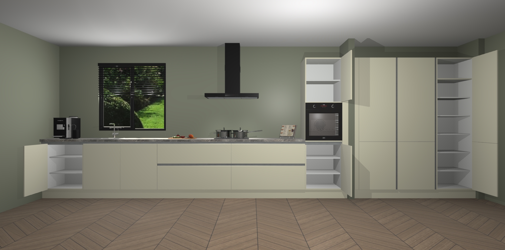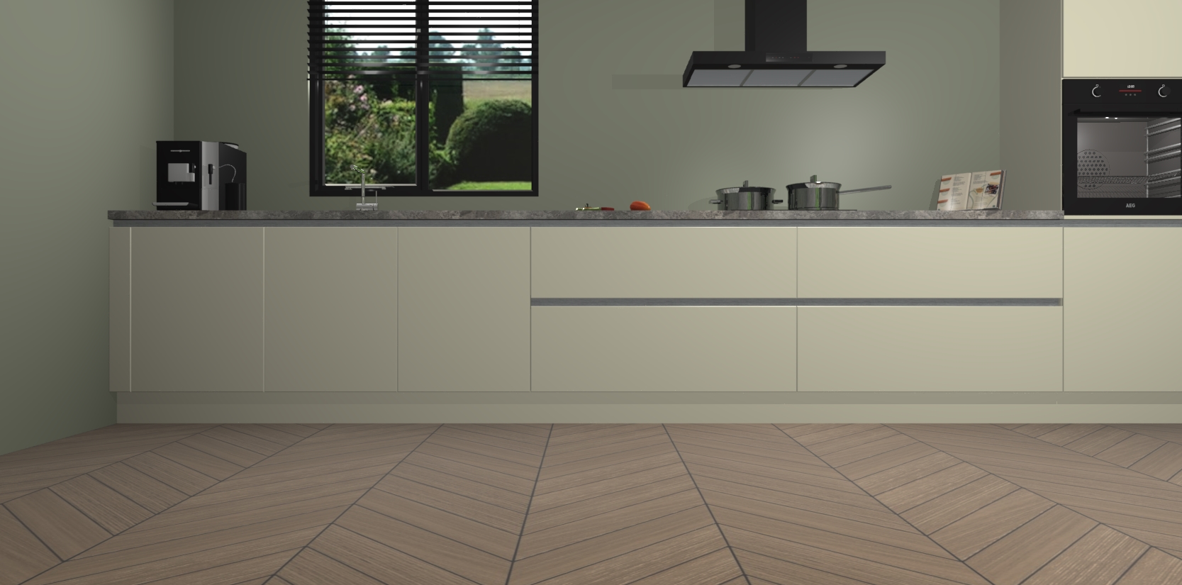 Een stijlvolle en praktische keuken als deze mag gezien worden. Dankzij de prachtige matte afwerking wordt de keuken gemakkelijk het middelpunt van uw huis - hij ziet er geweldig uit onder allerlei lichtomstandigheden, van dag tot nacht!