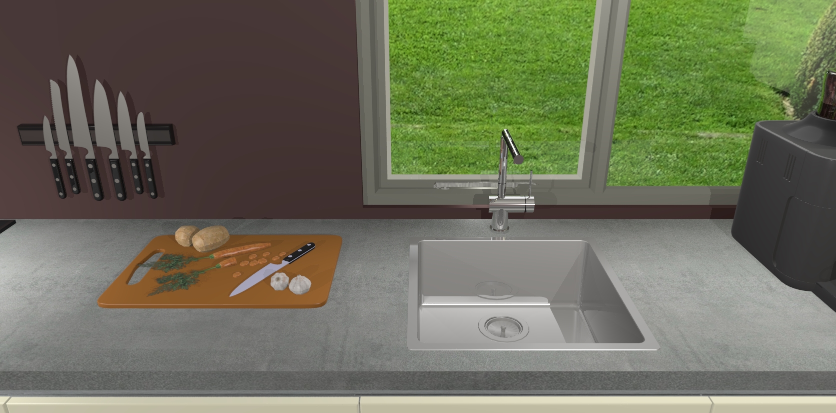 - De spoelbak is nog niet in gevreesd. Dit dient tijdens het werk gedaan te worden