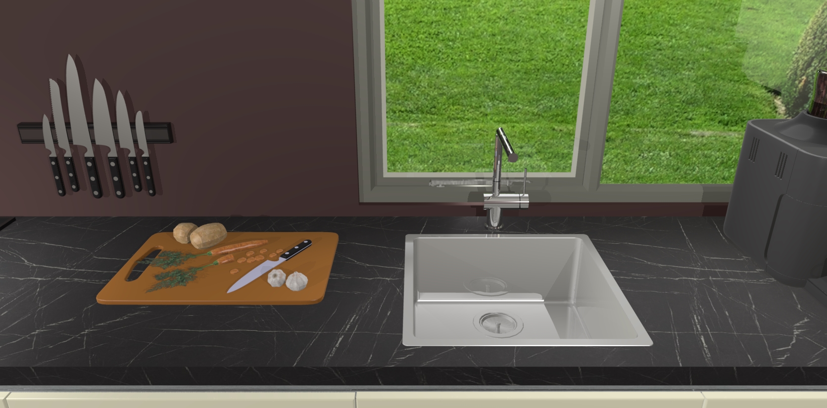 - De spoelbak is nog niet in gevreesd. Dit dient tijdens het werk gedaan te worden