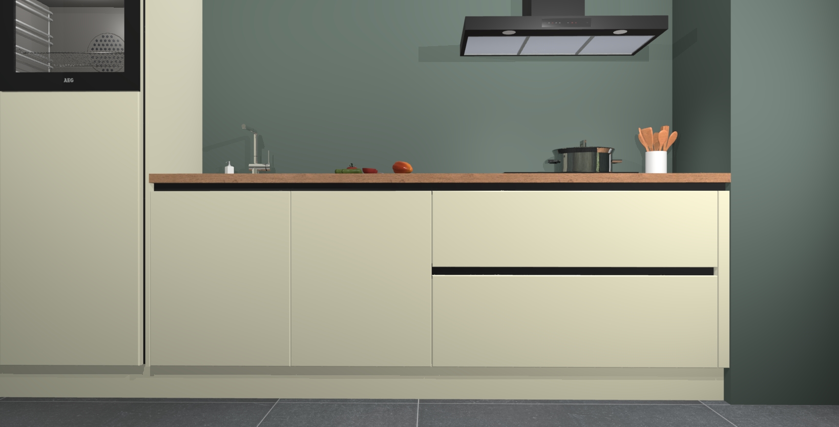 Inclusief plinten, stelpoten en werkblad