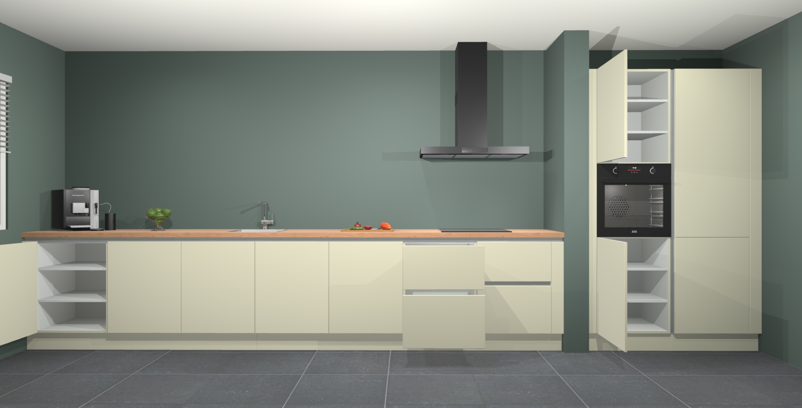 In deze box zijn alle kleuren verzameld van de deuren en werkbladen. Vraag de gratis kleurenbox aan en kijk thuis rustig verder!