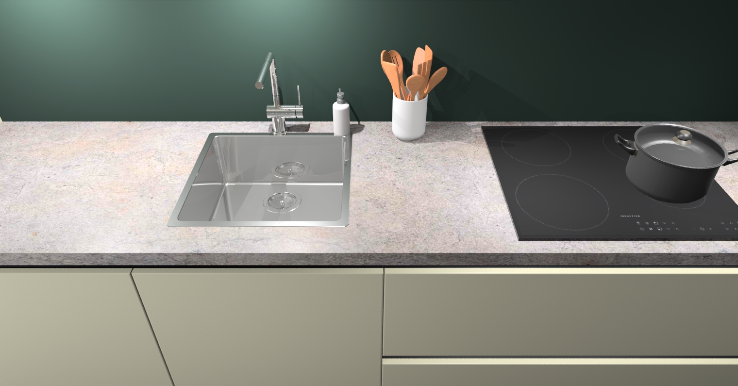 - Uitsparing van kookplaat, spoelbak en kraan dient u zelf te verzorgen.