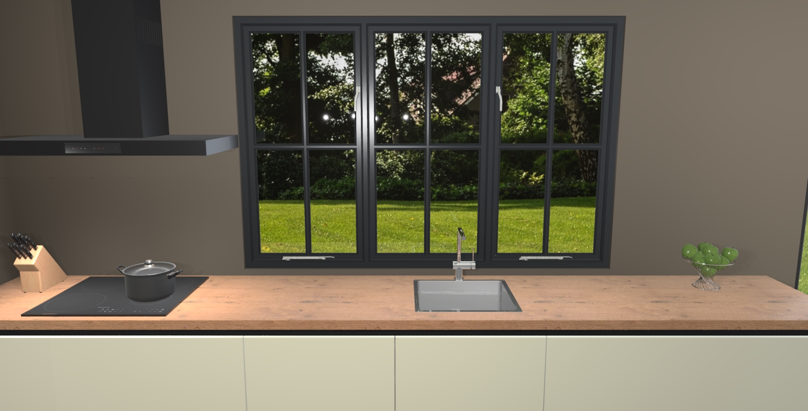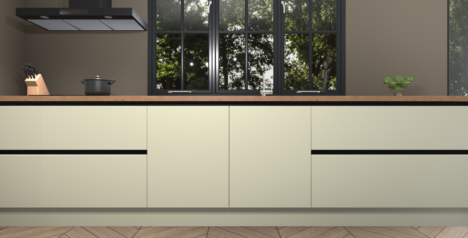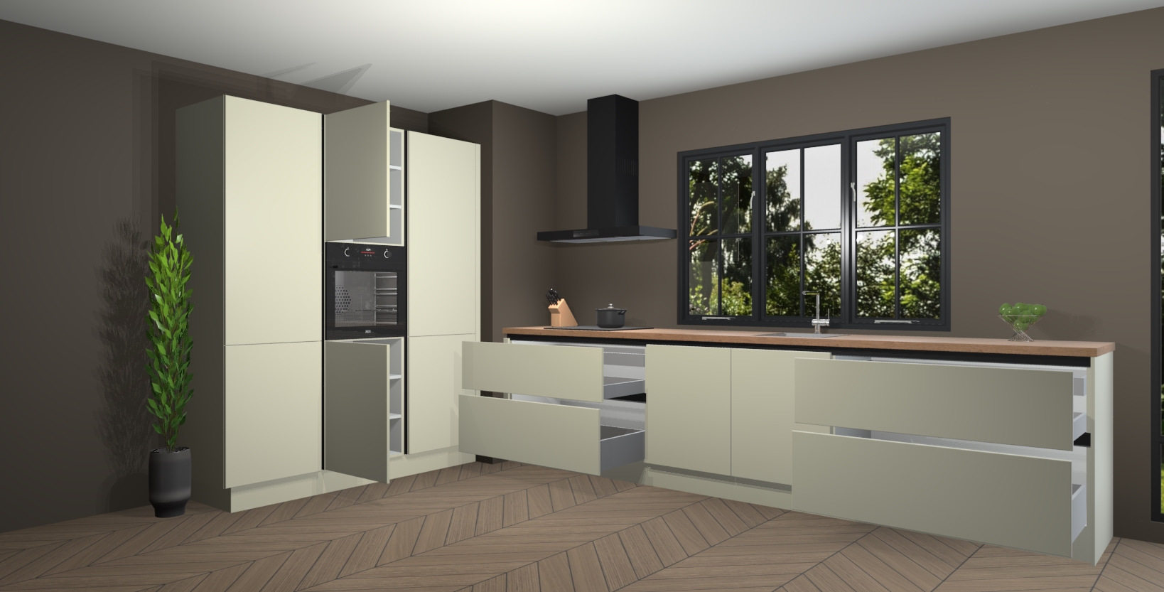 De softclose deuren openen en sluiten is ook heel eenvoudig - geniet van een moeiteloze keukenervaring, zelfs als er kinderen rondlopen. Voor extra gemak bij het plaatsen van uw bestelling bieden we ook een upgrade naar een kookplaat met geïntegreerde afzuiging.