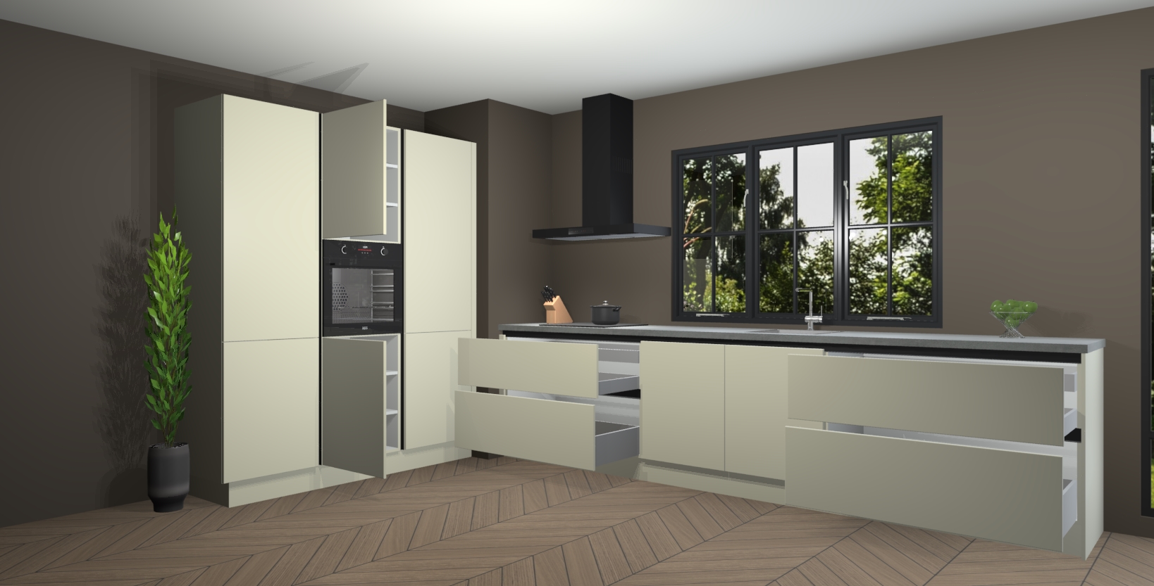 Inclusief plinten, stelpoten en werkblad