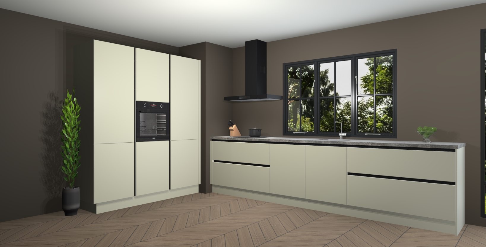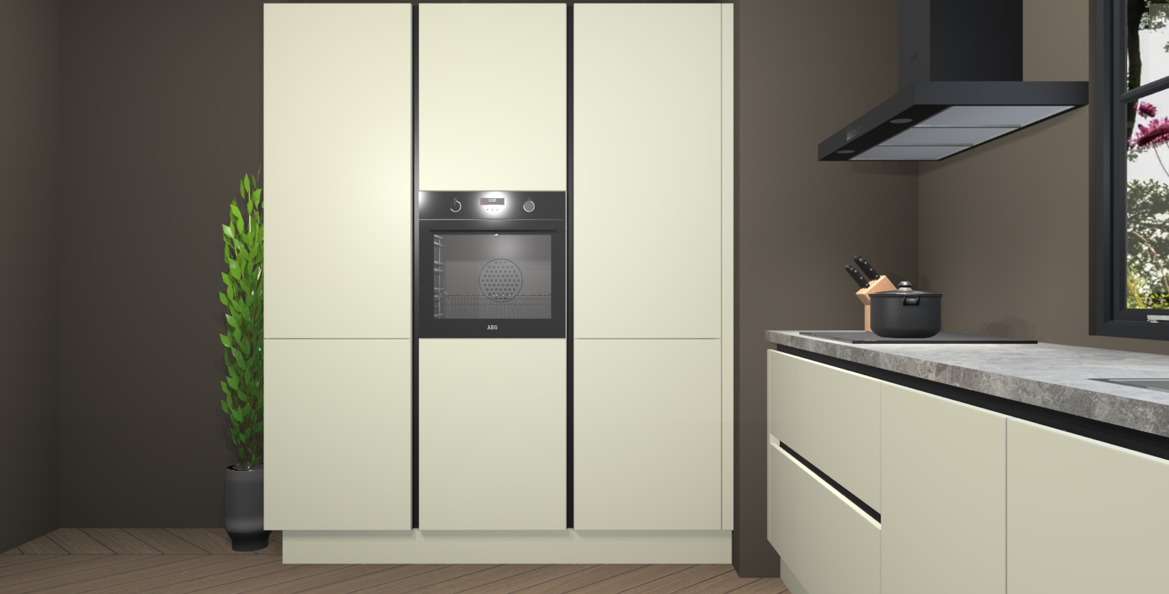 De softclose deuren openen en sluiten is ook heel eenvoudig - geniet van een moeiteloze keukenervaring, zelfs als er kinderen rondlopen. Voor extra gemak bij het plaatsen van uw bestelling bieden we ook een upgrade naar een kookplaat met geïntegreerde afzuiging.