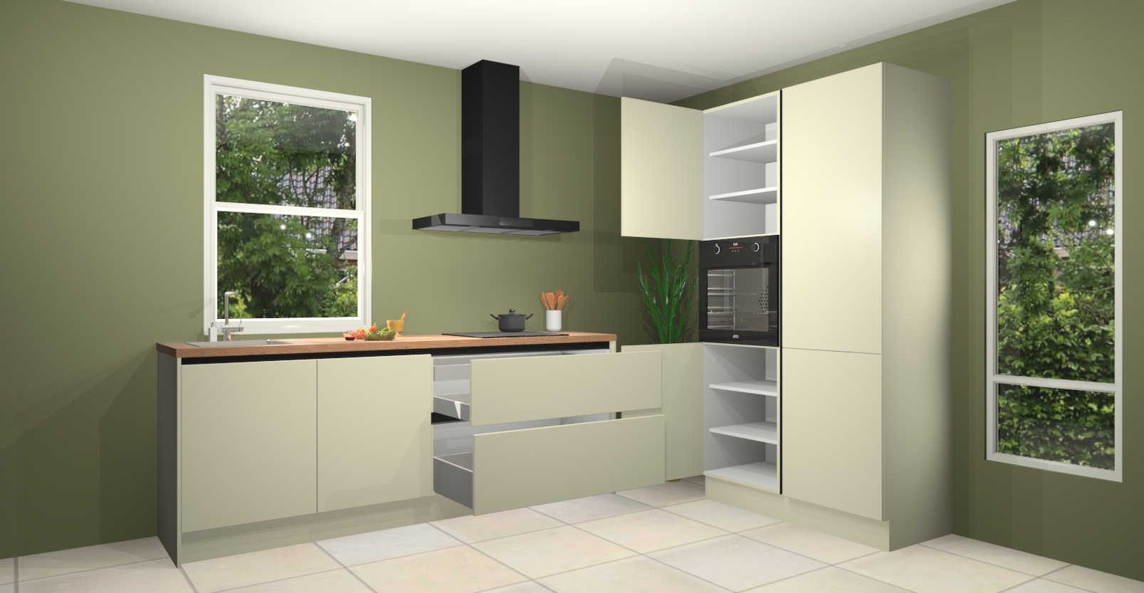De Magnolia greeploze keuken Monaco heeft voldoende opbergruimte om uw keukenbenodigdheden georganiseerd en netjes te houden. Geniet van het gemak van de soft-close deuren, die deze stijlvolle look perfect afmaken. Maar dat is nog niet alles. Met de Magnolia greeploze keuken Monaco krijgt u maar liefst 5 ingebouwde apparaten: een oven, inductiekookplaat, afzuigkap, vaatwasser en koelkast. Deze kunnen gemakkelijk worden geüpgraded naar AEG als ze besteld zijn.