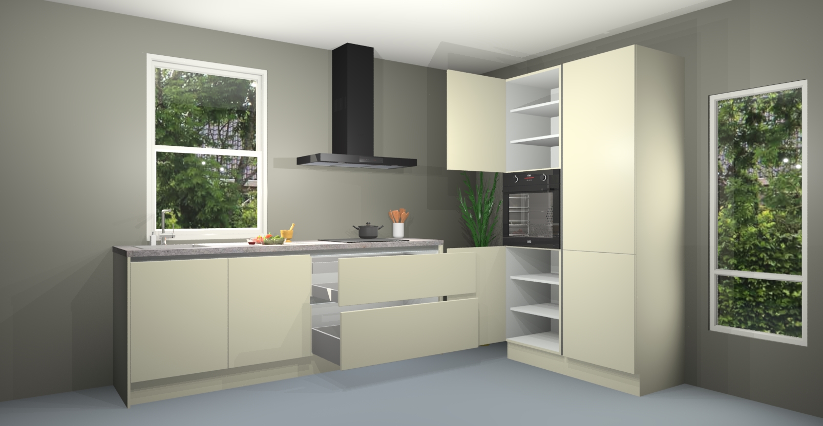De Magnolia greeploze keuken Monaco heeft voldoende opbergruimte om uw keukenbenodigdheden georganiseerd en netjes te houden. Geniet van het gemak van de soft-close deuren, die deze stijlvolle look perfect afmaken. Maar dat is nog niet alles. Met de Magnolia greeploze keuken Monaco krijgt u maar liefst 5 ingebouwde apparaten: een oven, inductiekookplaat, afzuigkap, vaatwasser en koelkast. Deze kunnen gemakkelijk worden geüpgraded naar AEG als ze besteld zijn.