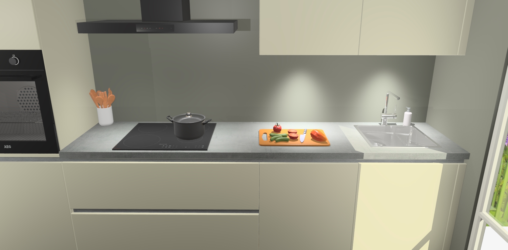 - Uitsparing van kookplaat, spoelbak en kraan dient u zelf te verzorgen.
