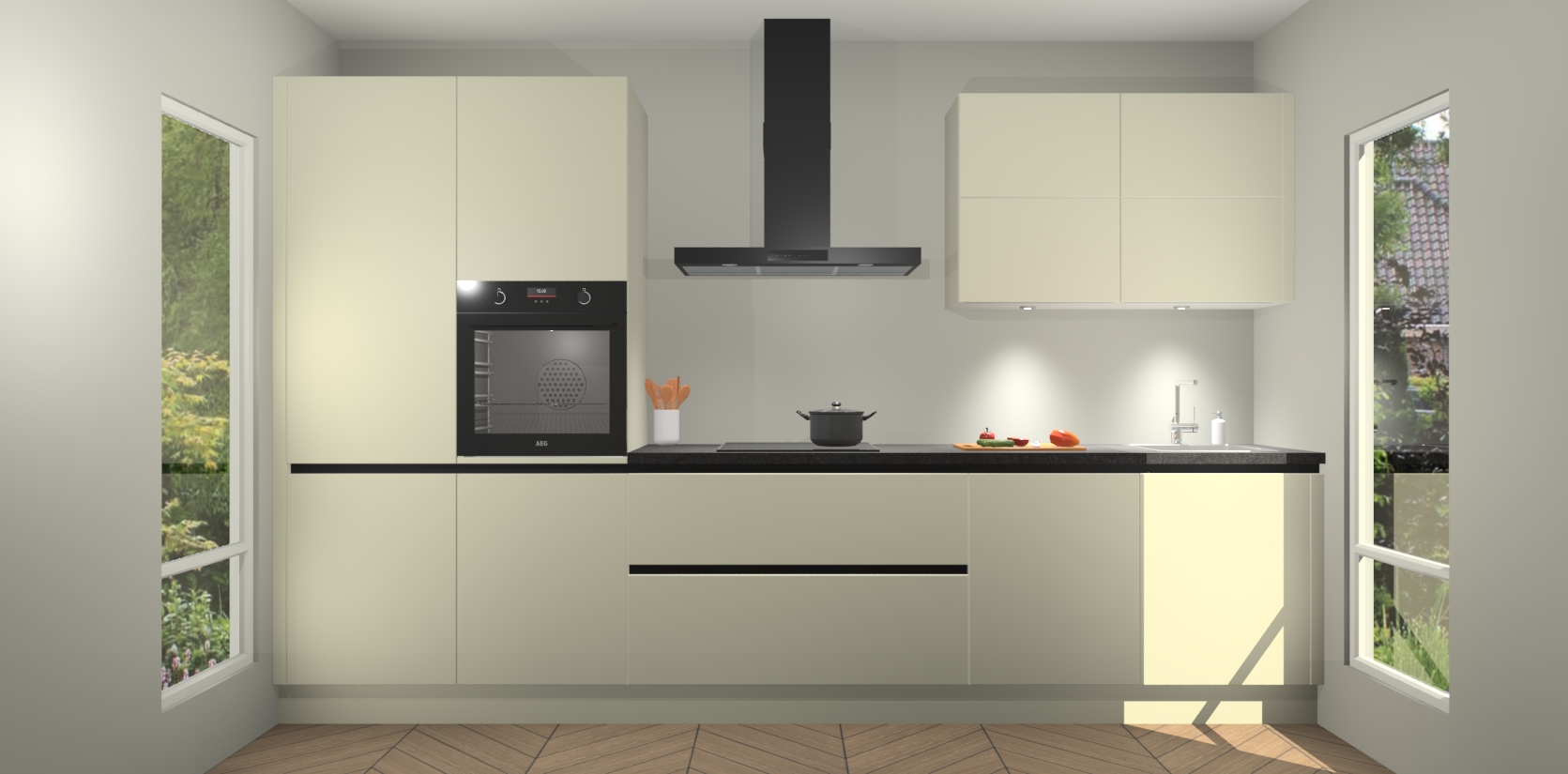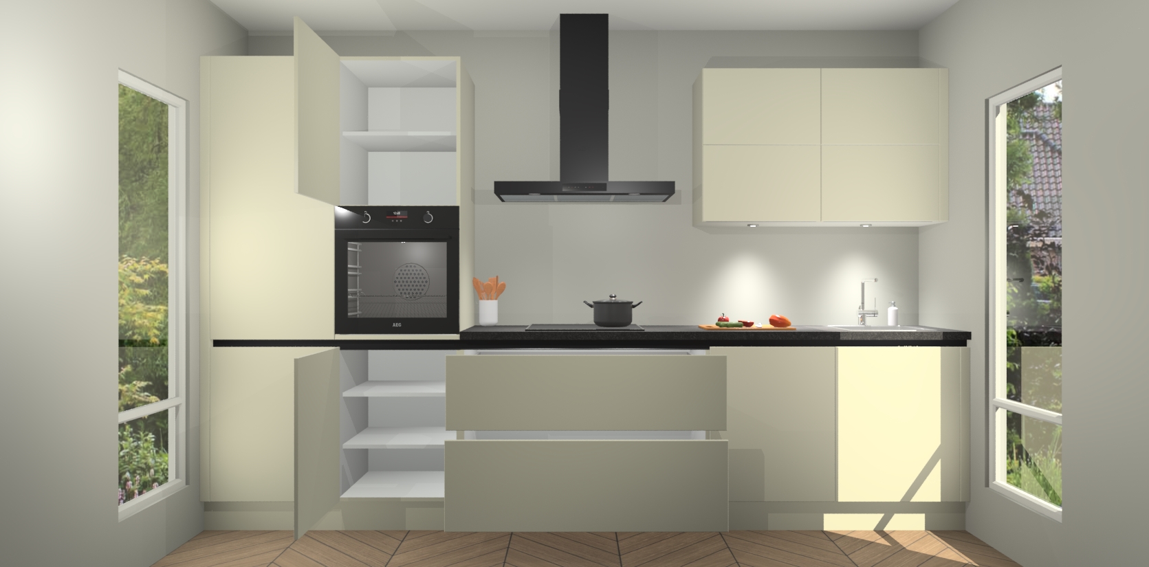 Inclusief plinten, stelpoten en werkblad