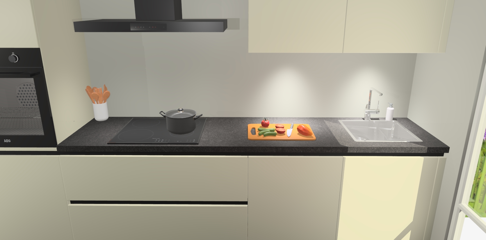 - Uitsparing van kookplaat, spoelbak en kraan dient u zelf te verzorgen.