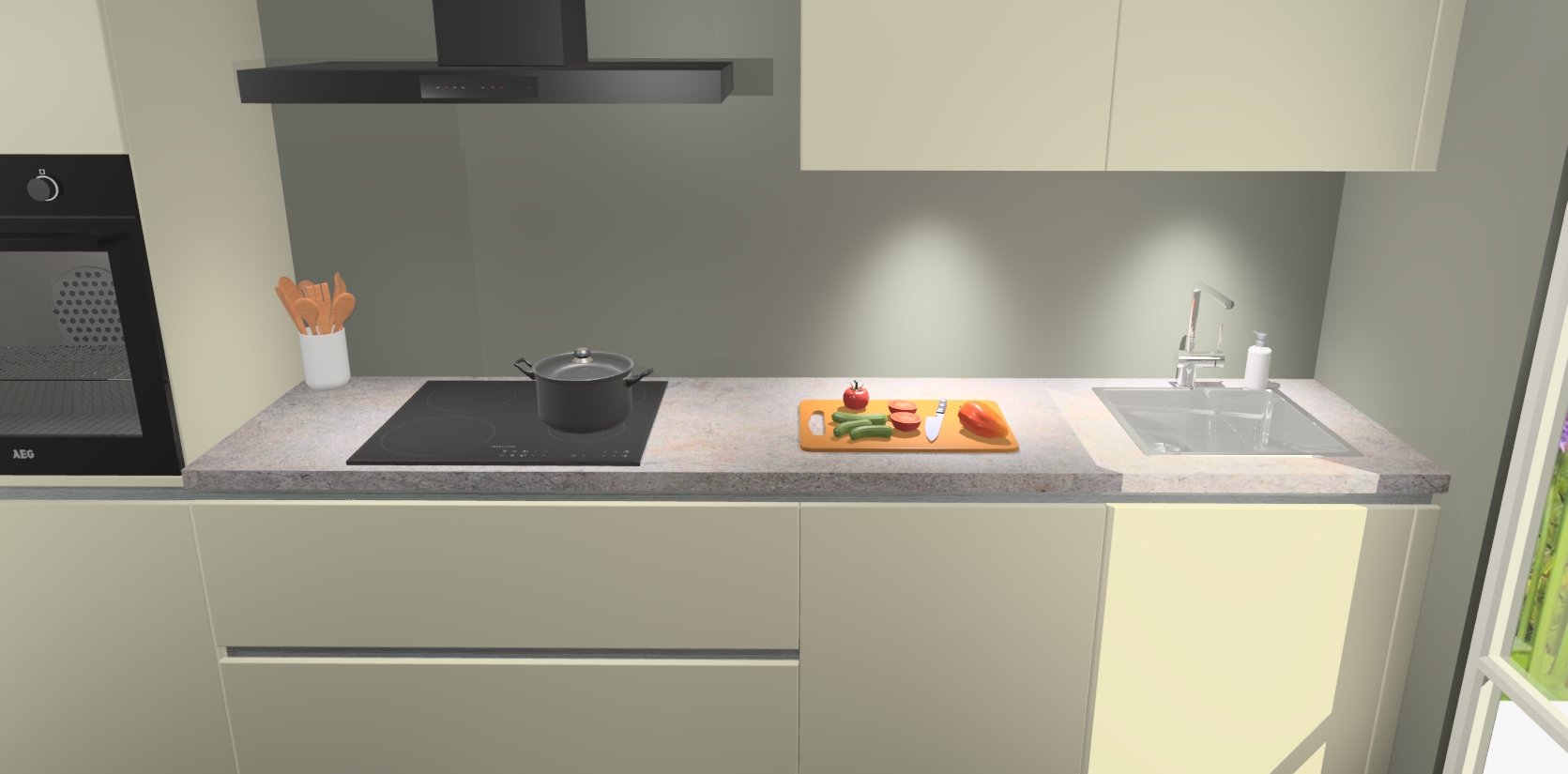 - Uitsparing van kookplaat, spoelbak en kraan dient u zelf te verzorgen.