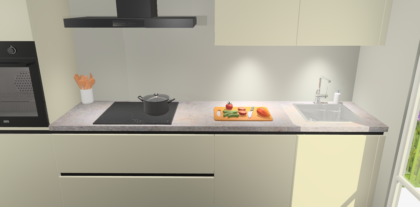 - Uitsparing van kookplaat, spoelbak en kraan dient u zelf te verzorgen.
