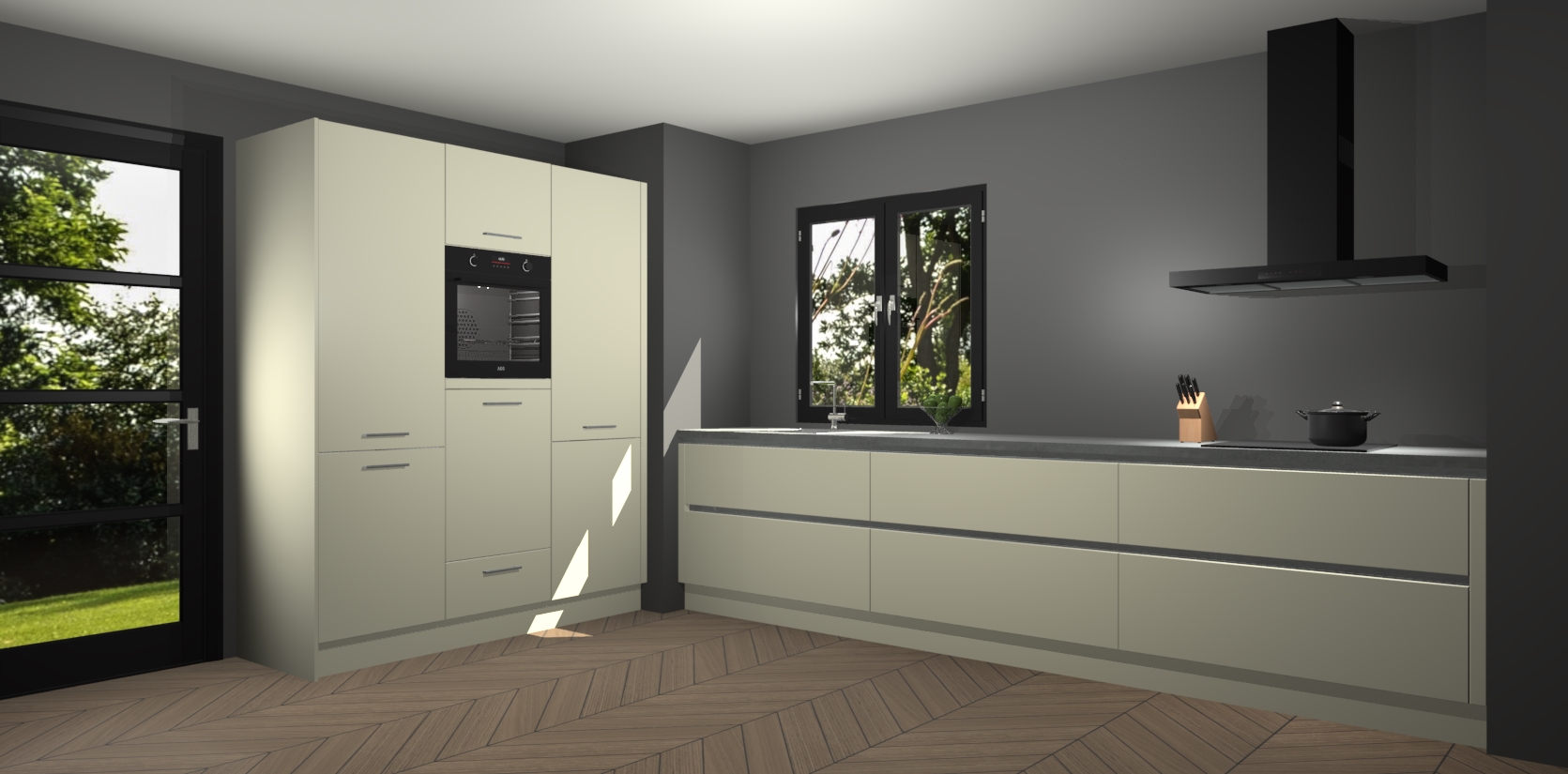 De softclose deuren openen en sluiten is ook heel eenvoudig - geniet van een moeiteloze keukenervaring, zelfs als er kinderen rondlopen. Voor extra gemak bij het plaatsen van uw bestelling bieden we ook een upgrade naar een kookplaat met geïntegreerde afzuiging.
