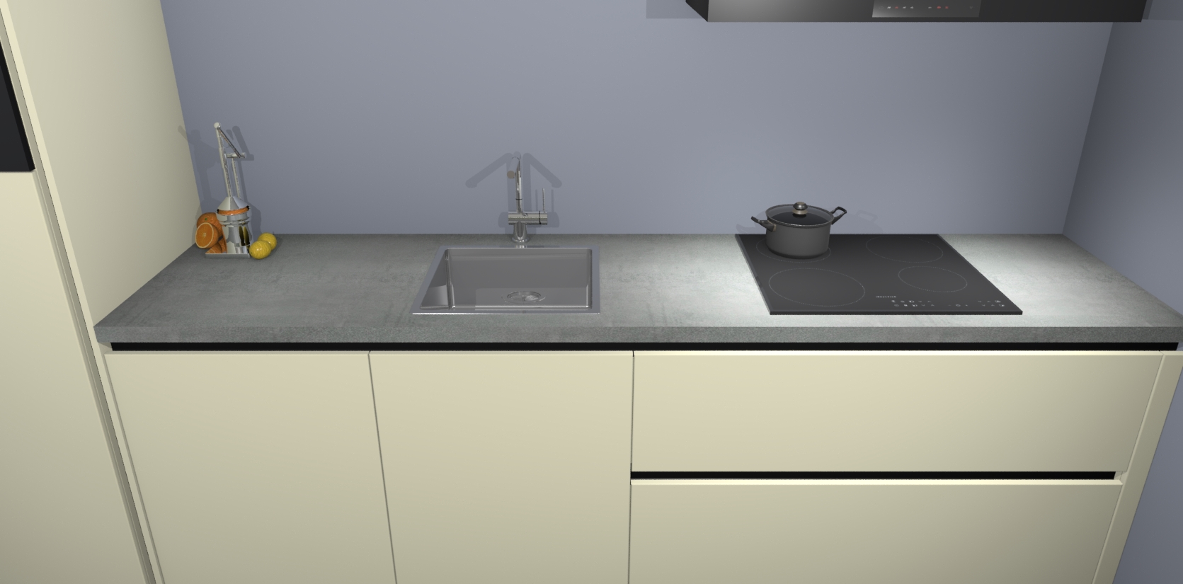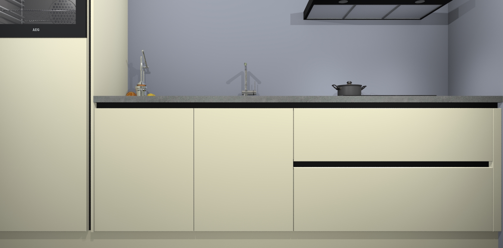 Inclusief plinten, stelpoten en werkblad