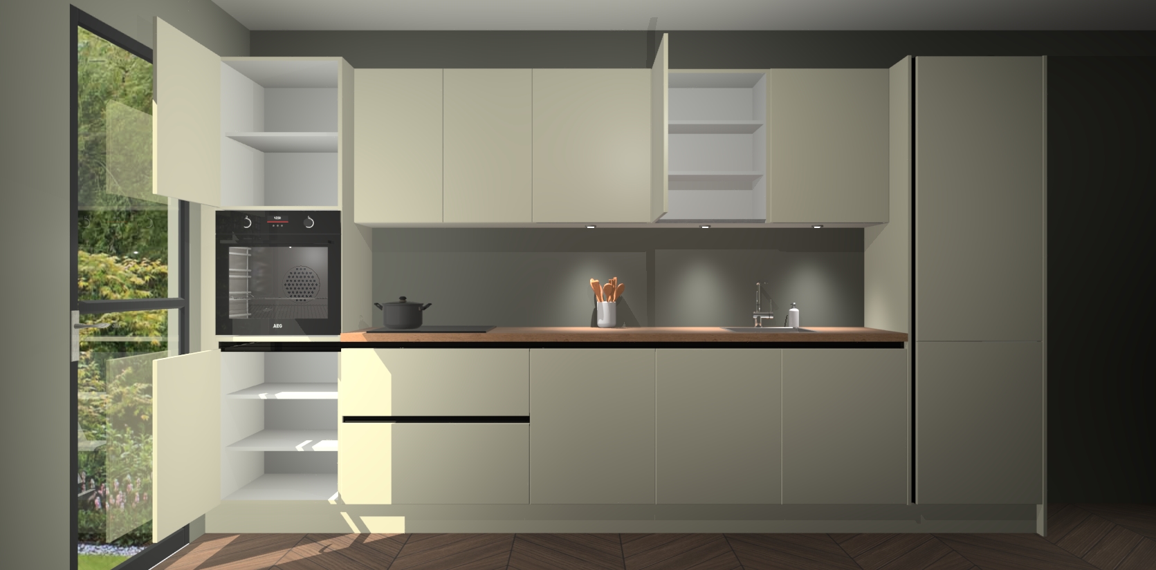 Inclusief plinten, stelpoten en werkblad