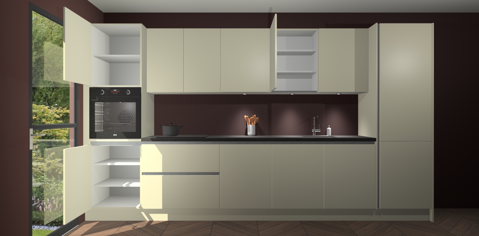 Dit is de perfecte keuken voor wie op zoek is naar een luxueuze stijl zonder zijn portemonnee te legen! Het chique ontwerp van de magnolia greeploze keuken Wels voegt dat vleugje verfijning toe aan elk huis. Het gemak van voorgemonteerde kasten bespaart u talloze uren tijd en energie, zodat u veel sneller dan verwacht kunt beginnen te genieten van uw prachtige nieuwe keuken. Bovendien bedraagt de levertijd slechts 7 weken.