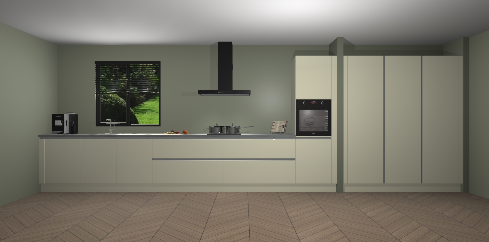 Een stijlvolle en praktische keuken als deze mag gezien worden. Dankzij de prachtige matte afwerking wordt de keuken gemakkelijk het middelpunt van uw huis - hij ziet er geweldig uit onder allerlei lichtomstandigheden, van dag tot nacht!