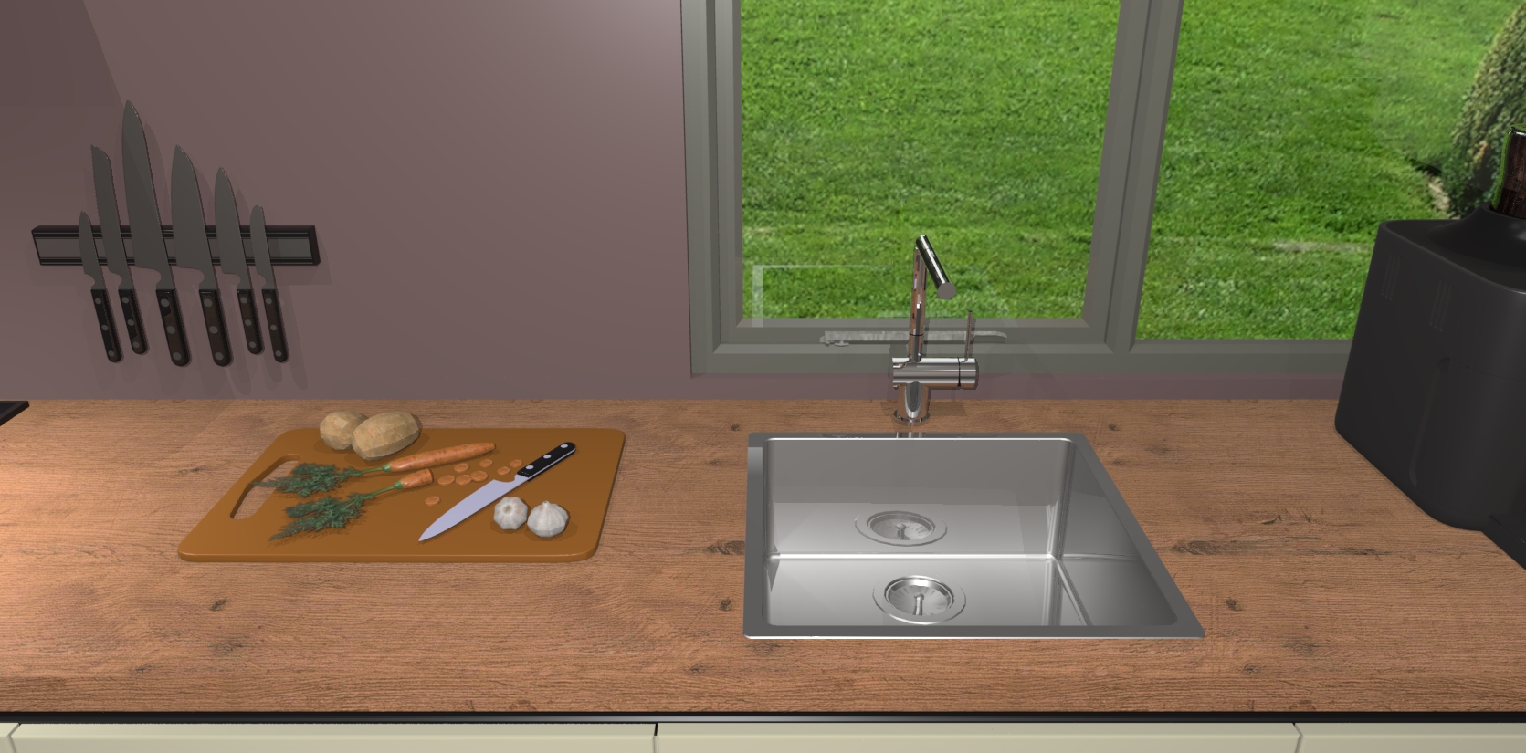 - De spoelbak is nog niet in gevreesd. Dit dient tijdens het werk gedaan te worden