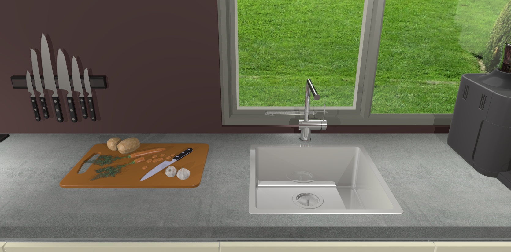 - De spoelbak is nog niet in gevreesd. Dit dient tijdens het werk gedaan te worden