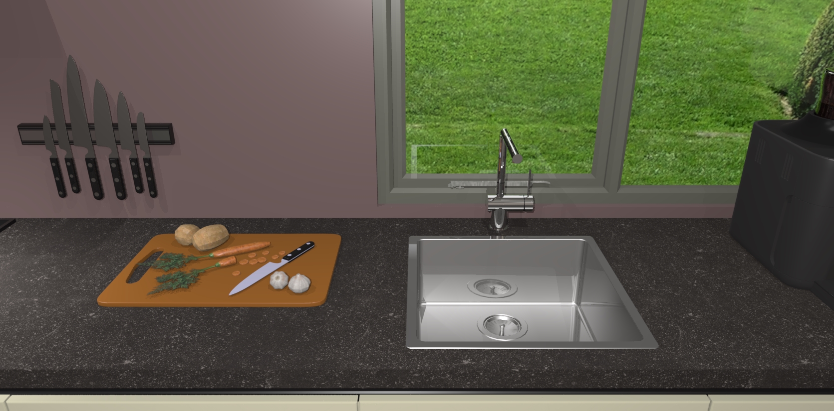 - De spoelbak is nog niet in gevreesd. Dit dient tijdens het werk gedaan te worden
