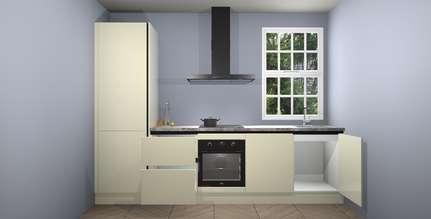 Inclusief plinten, stelpoten en werkblad