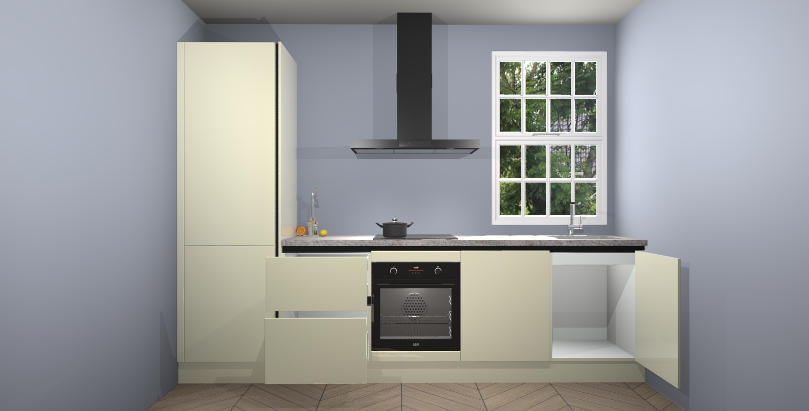 Inclusief plinten, stelpoten en werkblad